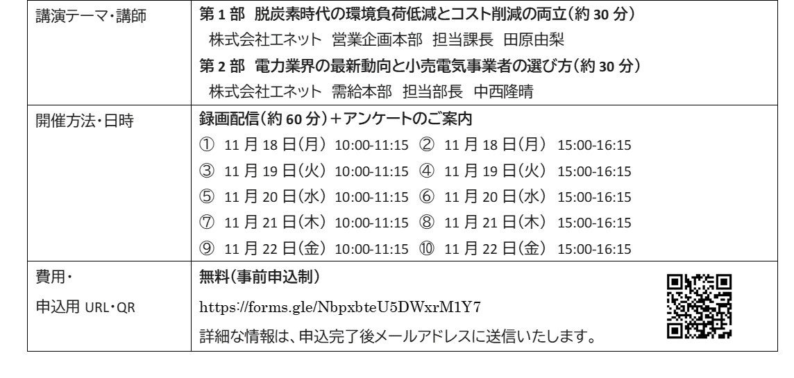 株式会社エネット(本社:東京都港区、代表取締役社長:谷口 直行、以下、エネット)は、企業の脱炭素経営(エネルギー使用時のCO2排出量を削減)についてオンラインによるセミナー(以下、ウェビナー)を以下の要項にて開催いたします。