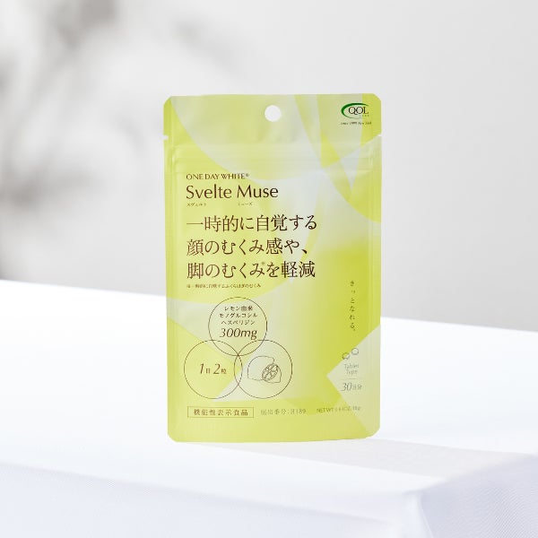 本品には、レモン由来モノグルコシルヘスペリジンが含まれます。レモン由来モノグルコシルヘスペリジンには、一時的に自覚する顔のむくみ感や、脚(ふくらはぎ)のむくみを軽減する機能があります。