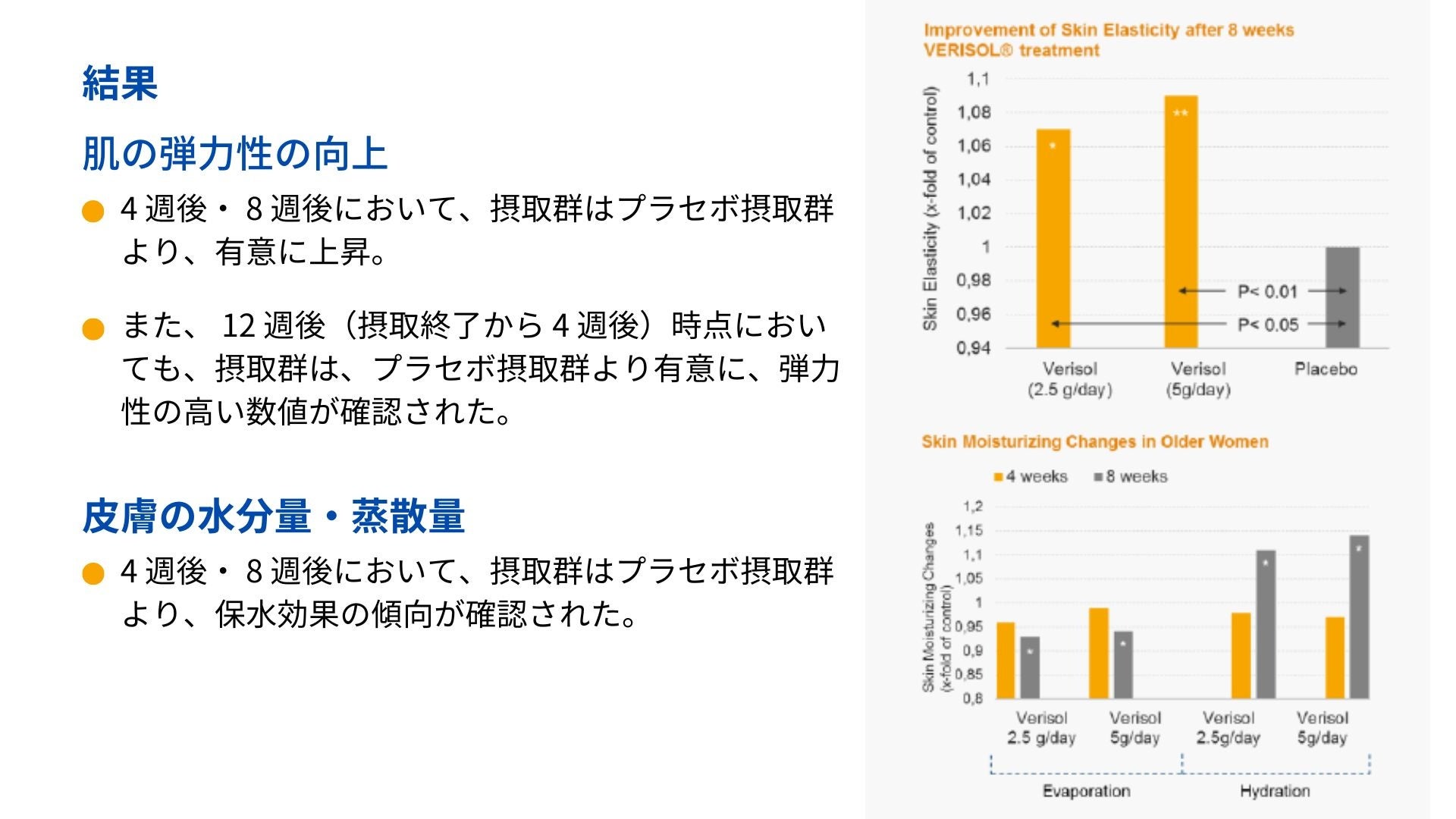 ∟本品はコラーゲンペプチドが含まれます。コラーゲンペプチドには、肌の弾力を維持し、肌の健康を守るのを助ける機能があることが報告されています。