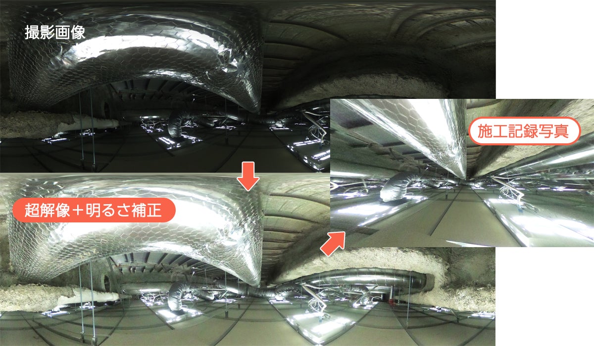 足場や視界に限界を伴うことが少なくない建設現場で、「AI 超解像」により、従来の360 °カメラの活用における「画像の鮮明度」が向上します。
