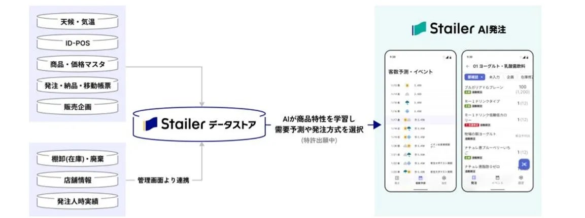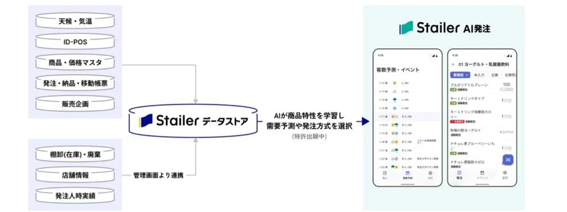 Stailerは、スーパーマーケットやドラッグストアといった小売・流通事業者向けに、小売現場のDX全般を支えるプラットフォームです。ネットスーパーの事業運営に必要な各種アプリやシステムをフルセットで提供する「Stailer ネットスーパー」、売上・天候・販促情報など複数のデータをもとに、AIが自動で最適な発注内容を提案する「Staierl AI発注」など、小売事業の生産性課題を解決するサービスを提供しています。