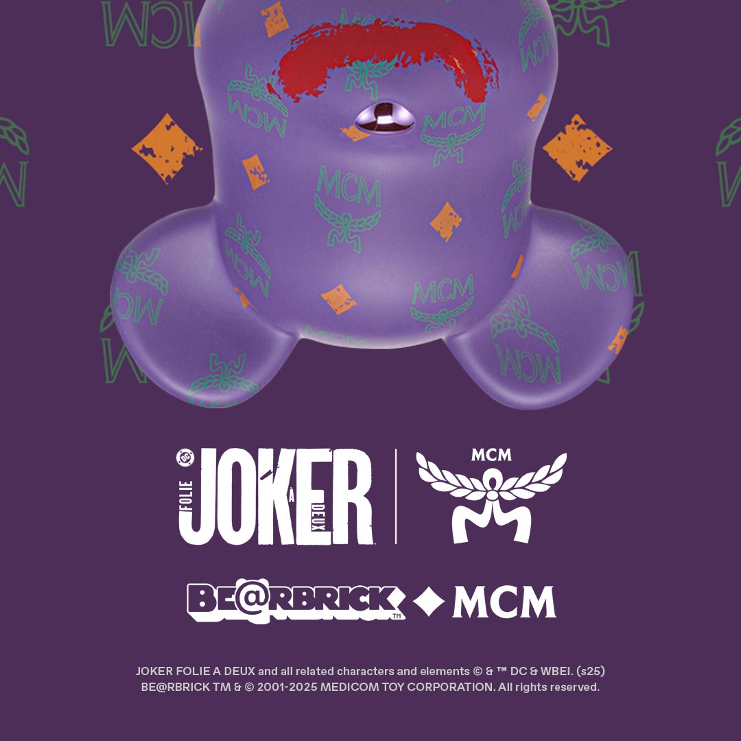ジョーカーを象徴するアイコニックなパープルに、不敵な笑みを浮かべた口元。MCMの伝統あるヴィセトスモノグラムをプリントしたBE@RBRICK。100%と400%の2サイズセットで展開。