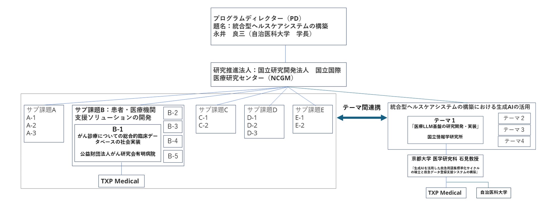 TXP Medical株式会社(代表取締役CEO:園生智弘、以下TXP Medical)は、内閣府の「戦略的イノベーション創造プログラム(SIP)」第3期の課題「統合型ヘルスケアシステムの構築における生成AIの活用」テーマ1「医療LLM基盤の研究開発・実装」にて採択された国立情報学研究所(研究開発責任者:相澤彰子)の協力機関のひとつとして選定されました。研究内のサブテーマの1つである『生成AIを活用した救急用語集標準化サイクルの確立と救急データ登録支援システムの構築』を行う京都大学医学研究科の石見教授グループの一員として、自治医科大学牧元准教授と共に研究開発に参画することになりました。