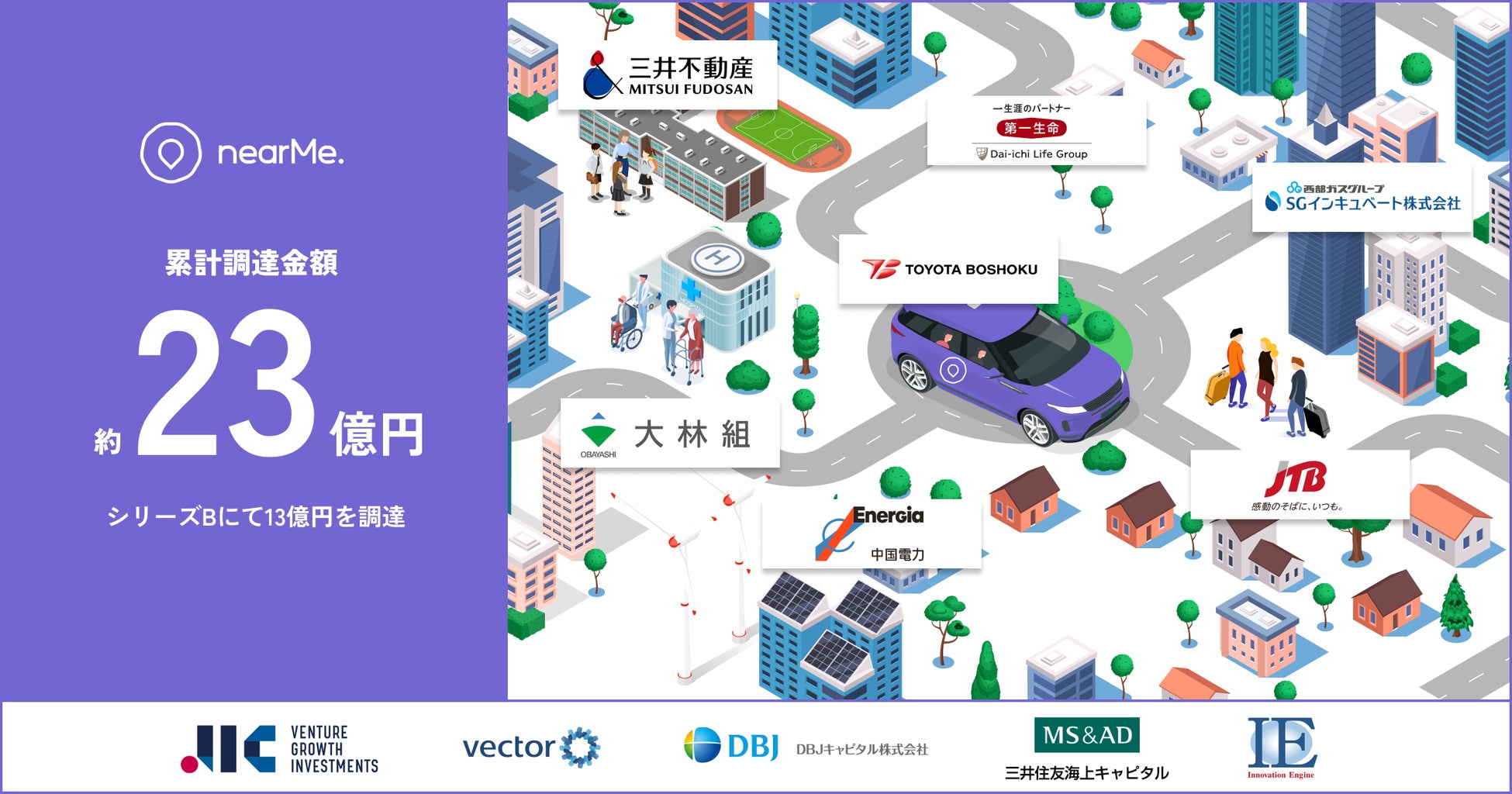 独自のAIを活用し「シェアによって、お得でスムーズ」な移動体験を提供する“スマートシャトル®”を展開する株式会社NearMe(本社:東京都中央区、代表取締役社長:髙原幸一郎、以下:ニアミー)は、第一生命保険株式会社、株式会社大林組、三井不動産株式会社などを引受先とした第三者割当増資および、株式会社日本政策金融公庫からの借入により、シリーズBセカンドクローズにて総額約7億円の資金調達を実施し、シリーズBラウンドとしては約13億円を資金調達しました。なお、これまでの累計調達額は約23億円になります。