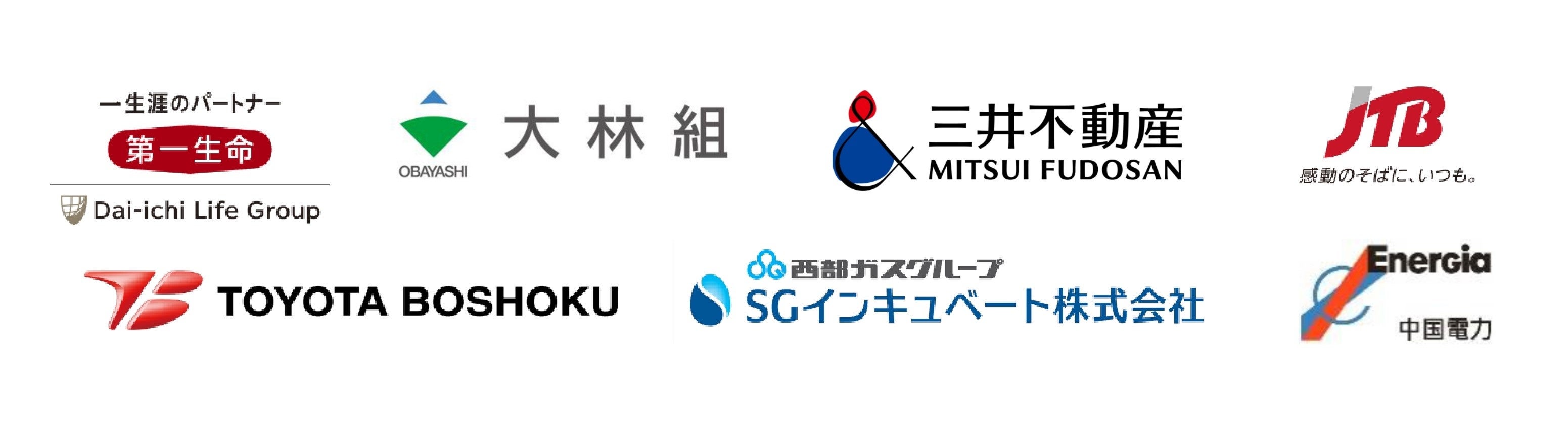 第一生命保険株式会社、株式会社大林組、三井不動産株式会社※、株式会社JTB、トヨタ紡織株式会社、SGインキュベート株式会社、中国電力株式会社、株式会社日本政策金融公庫など