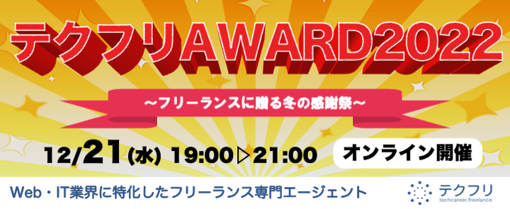 ITフリーランサー向けのイベント「テクフリAWARD2022〜フリーランスに贈る冬の感謝祭〜」を開催!