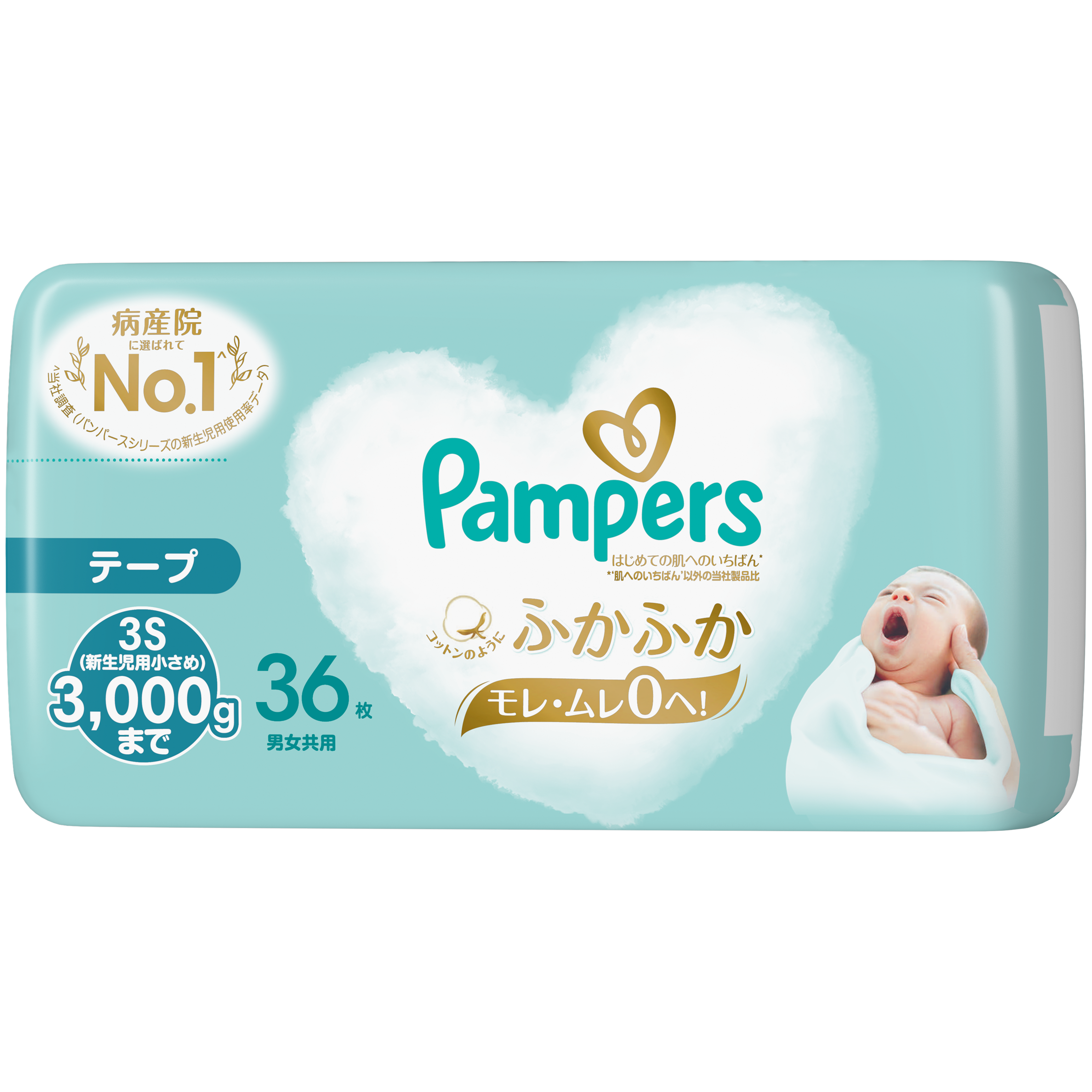 パンパースは、すべての赤ちゃんの成長をサポートするべく、3,000gよりも小さく生まれてくる赤ちゃんのために、新生児サイズより小さいサイズも展開しています。この度、「パンパース はじめての肌へのいちばん* テープ」 3S (新生児用小さめ) サイズがリニューアルして、“コットンのようにふかふか”なパンパース史上最高のやわらかさ*6に。さらにモレやムレ対策も強化し、“モレ・ムレ0へ!”。厳選されたやわらかな素材で、うまれたての赤ちゃんの繊細な肌をやさしく快適に包み込みます。