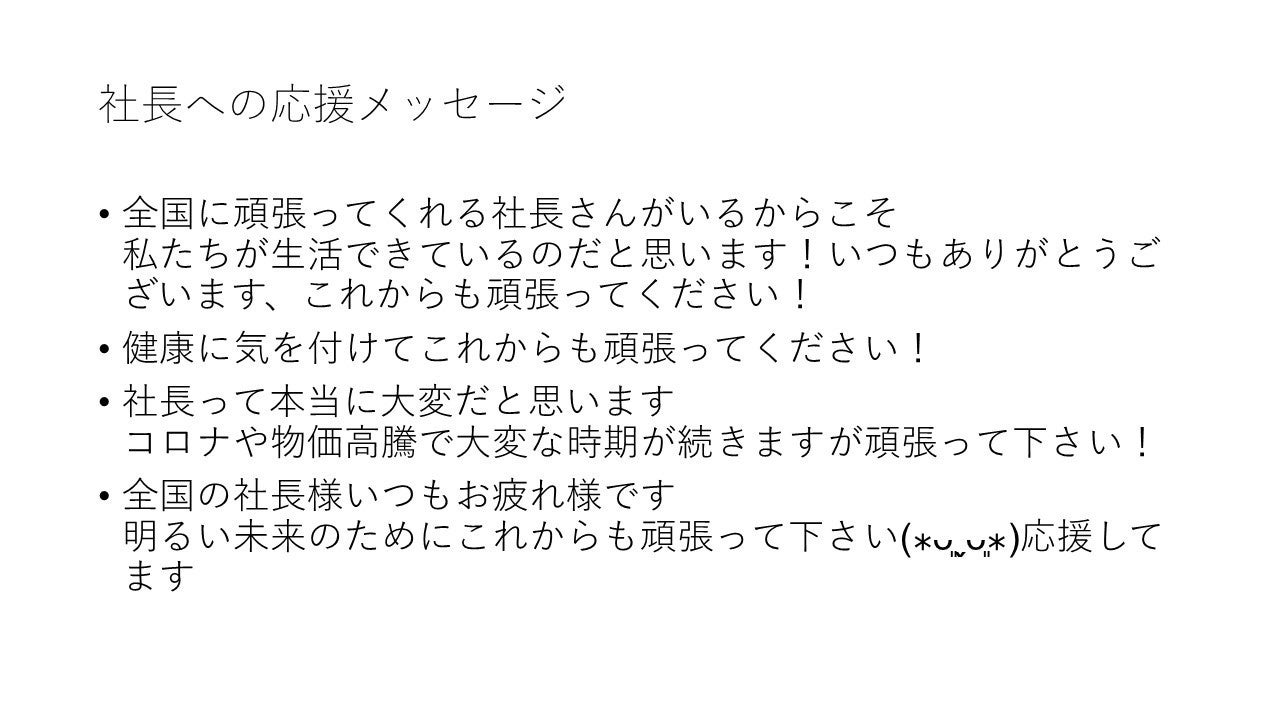 - 【4】社長への応援メッセージ