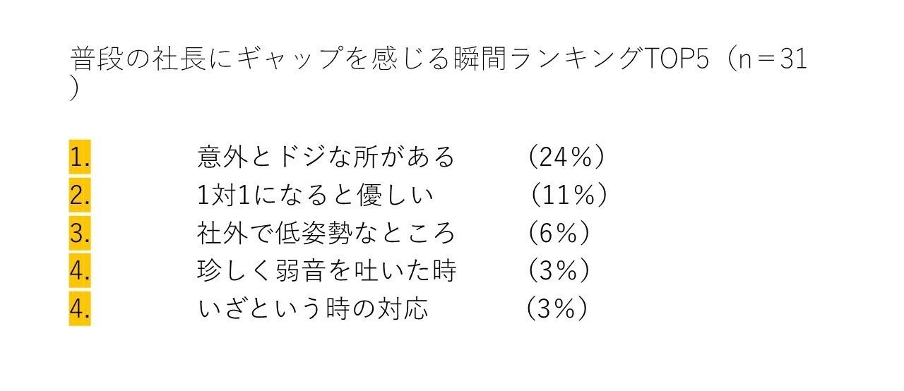 - 【3】普段の社長にギャップを感じる瞬間ランキング