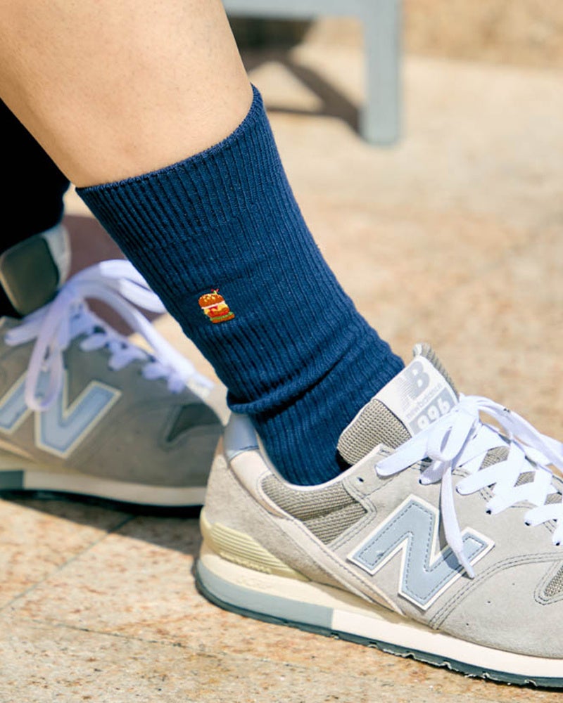 ゴールデンベアの隠れた名品、日本製の靴下にハンバーガーを刺繍しました。