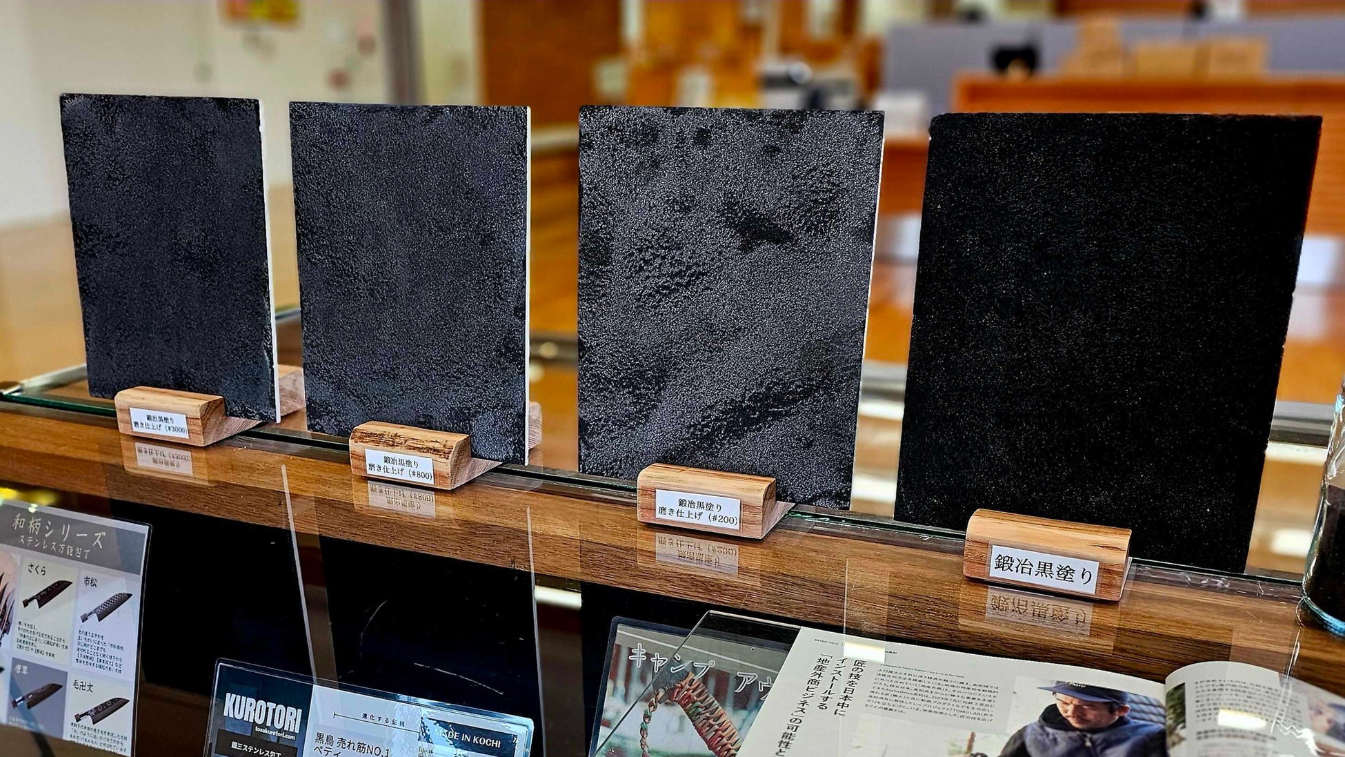 「鍛冶黒-KAJIKURO-」の試作製作は、四万十町東又で鍛冶屋を営む黒鳥鍛造工場の梶原様と共に進めてまいりました。かねてより、四万十町から製品の発信をしていきたいと考えており、この度、四万十町役場のエントランスにて「鍛冶黒-KAJIKURO-」で作られた刃物ボードを展示させていただくことが決定いたしました。日本の伝統的工芸品である土佐打刃物の歴史と、その歴史の変革点として誕生したサステナブルな特殊左官材「鍛冶黒-KAJIKURO-」の展示をお楽しみください。
