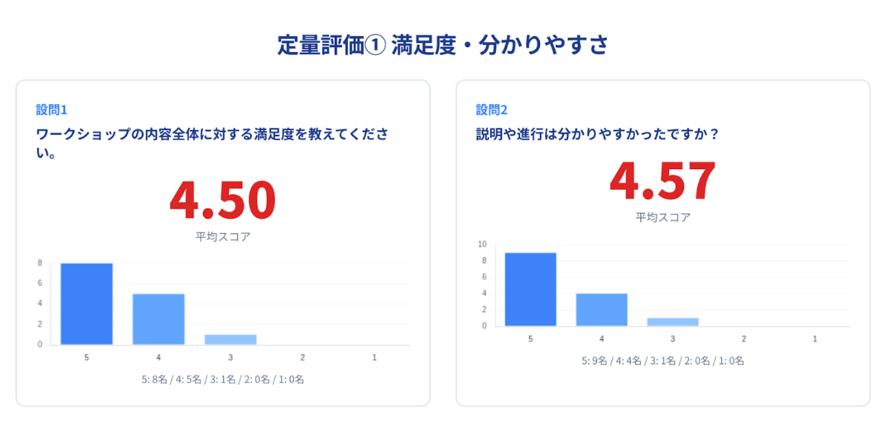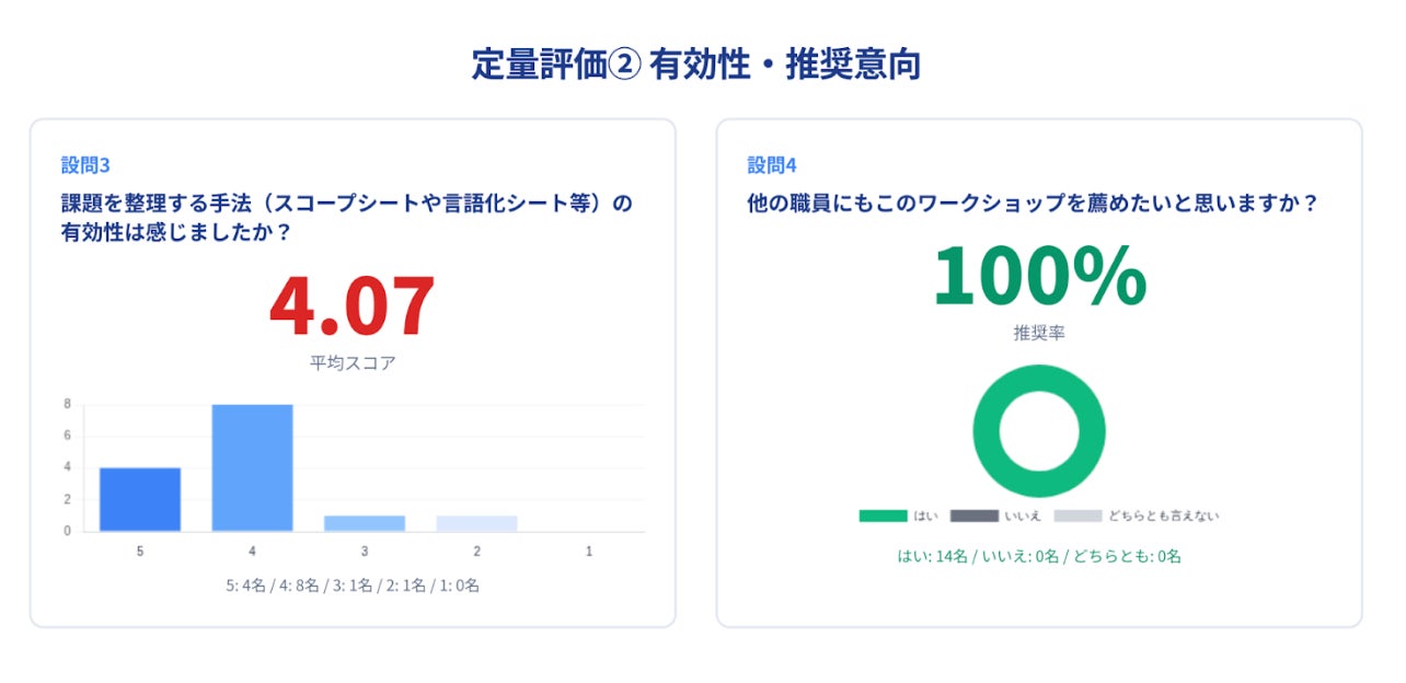 ワークショップ後のアンケートでは、以下の通り高い評価を得ました。