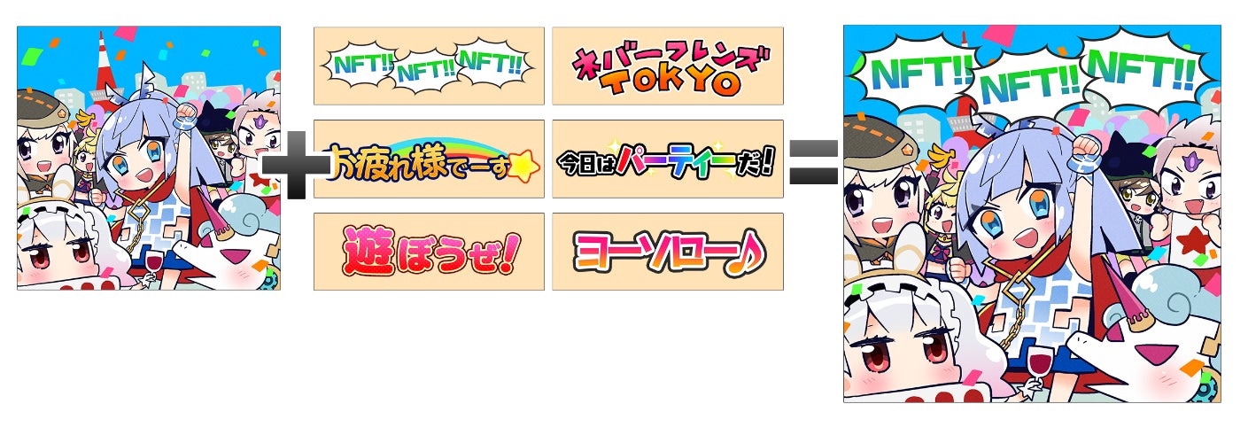 「サイ(再)プレス」は、NFTデジタルシールの「OMJ」を最大値の20ポイントまで貯めると、そのシールの一部のデザインを変化させることができる機能です。キャラクターや4コママンガの色やイラストを変化させたり、フレーズシールでは新しいフレーズが選択できます。「サイプレス」は1度だけ行うことができ、「サイプレス」後は元のデザインに戻すことはできません。