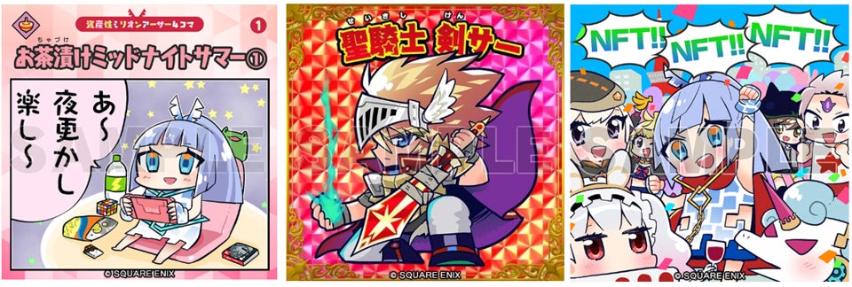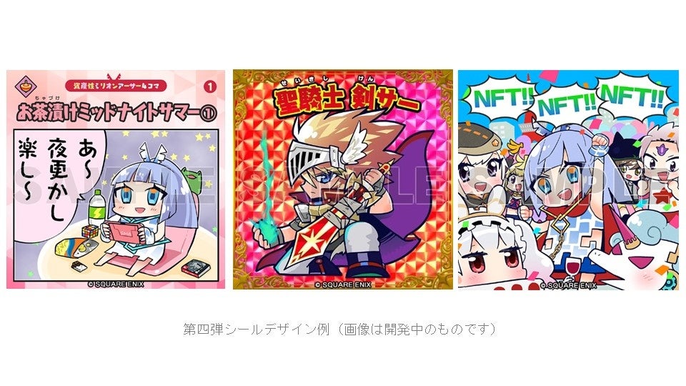 資産性ミリオンアーサーは、NFTの特性である「ブロックチェーン上に記録される保有情報とその証明性」に着目したNFTデジタルシールです。2021年10月から12月にかけて発売した第一弾から第三弾では「キャラクターシール」と「4コママンガシール」の2種類を中心に商品展開を行い、シリーズ累計9万枚以上、シリーズ通算平均販売率86%と大変ご好評をいただきました。