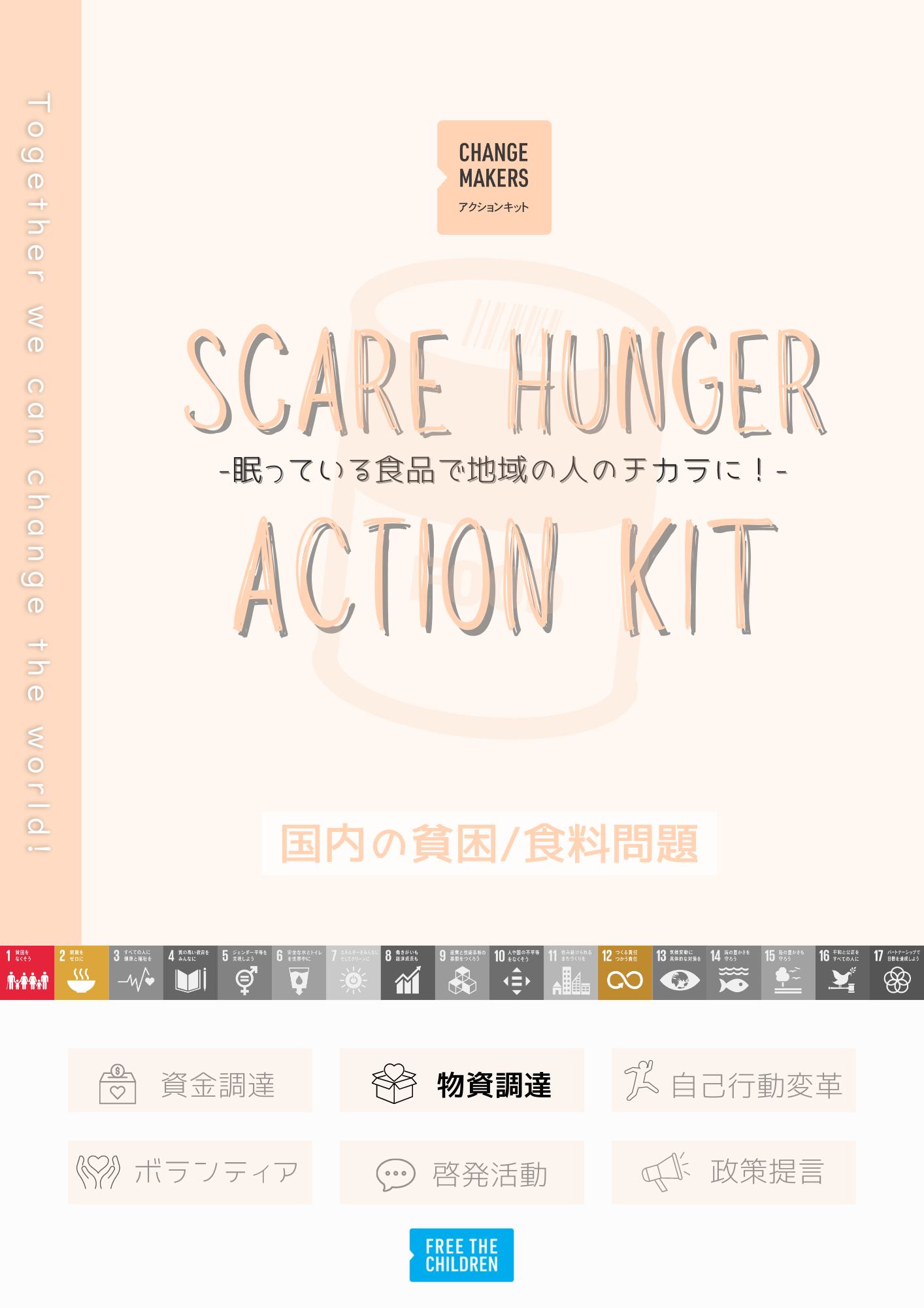 。開催方法がわからない、という方には、食料問題とフードドライブの開催方法がわかるアクションキット(ワークブック)をご用意(無料でダウンロード可)。