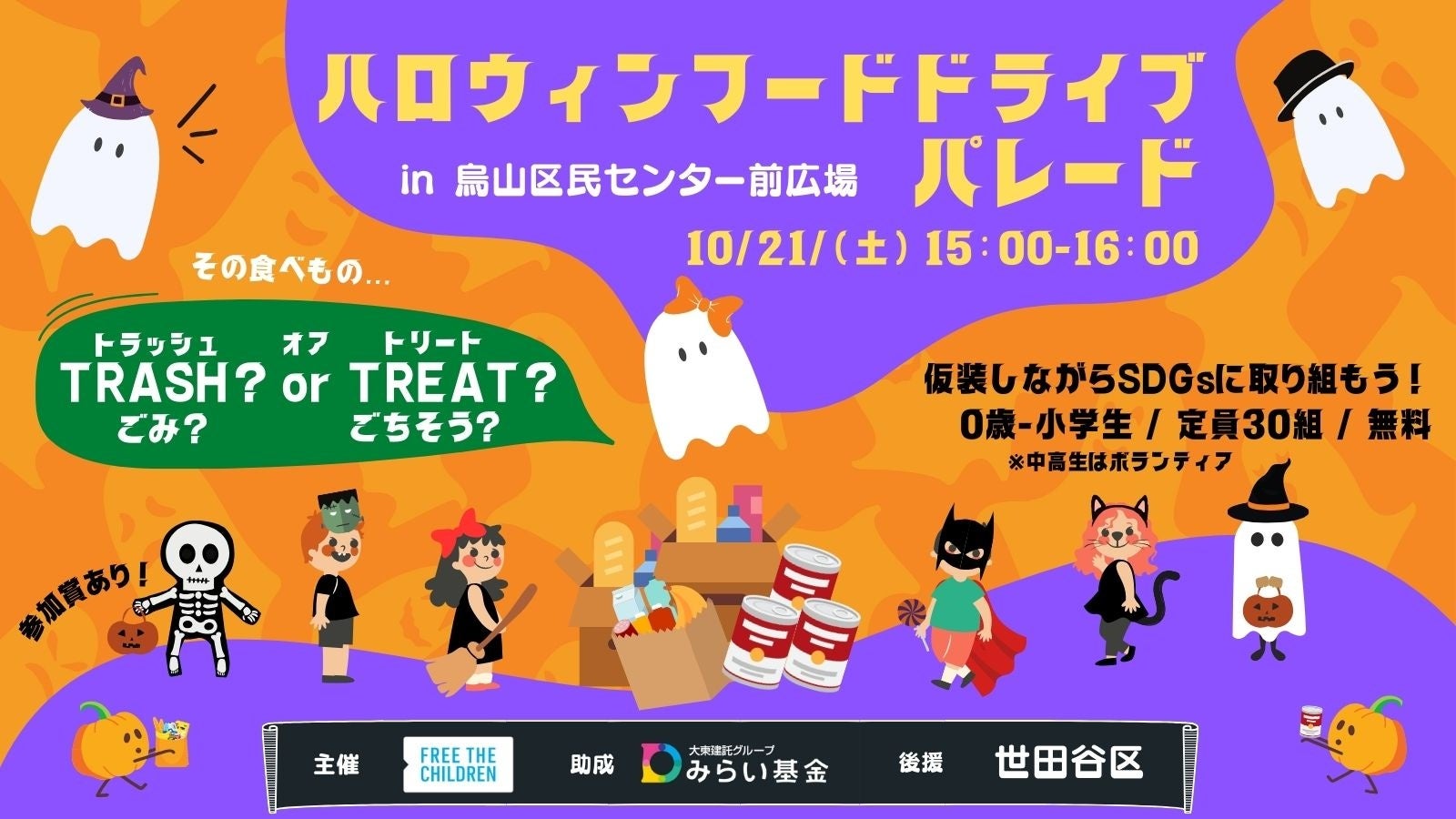 フリー・ザ・チルドレンでは、「ハロウィンフードドライブキャンペーン」と題して、10月に全国でフードドライブの開催を推進するキャンペーンを展開しています。