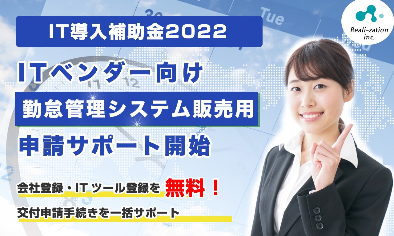 株式会社リアリゼイション(東京都渋谷区)は、補助金のプロによる「勤怠管理システム」を販売するベンダー向けに「IT導入補助金2022」の申請サポートプランを開始しました。