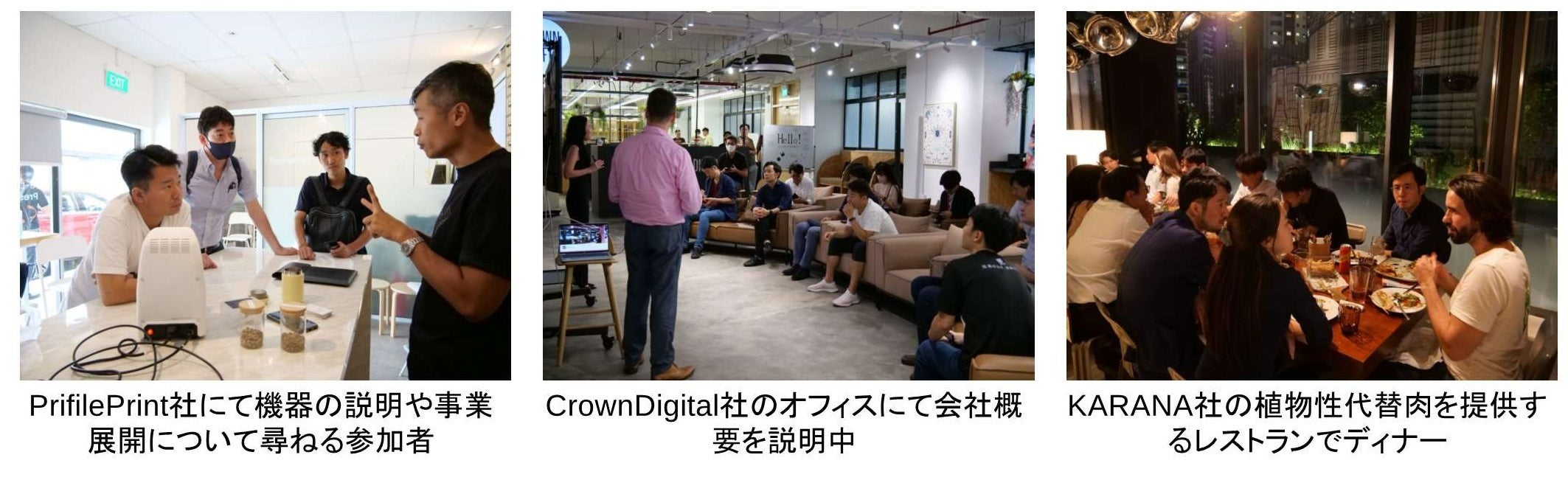 食料の約9割を輸入に依存するシンガポールは、サステイナブルに食料自給率を向上させるフードテックへの投資が国家レベルで加速し、今後世界のフードテックのハブとなることが期待されています。次世代の「食」を担う細胞培養肉や代替肉、ロボティクス、AIやIoTのマーケットに挑むベンチャーとアクセラレータを訪問しました。特にジャックフルーツを使用した代替肉を提供するレストランでのディナーでは、味や触感に関する評価はもちろん、日本への代替肉の参入可能性や食文化に関する議論が活発に行われました。