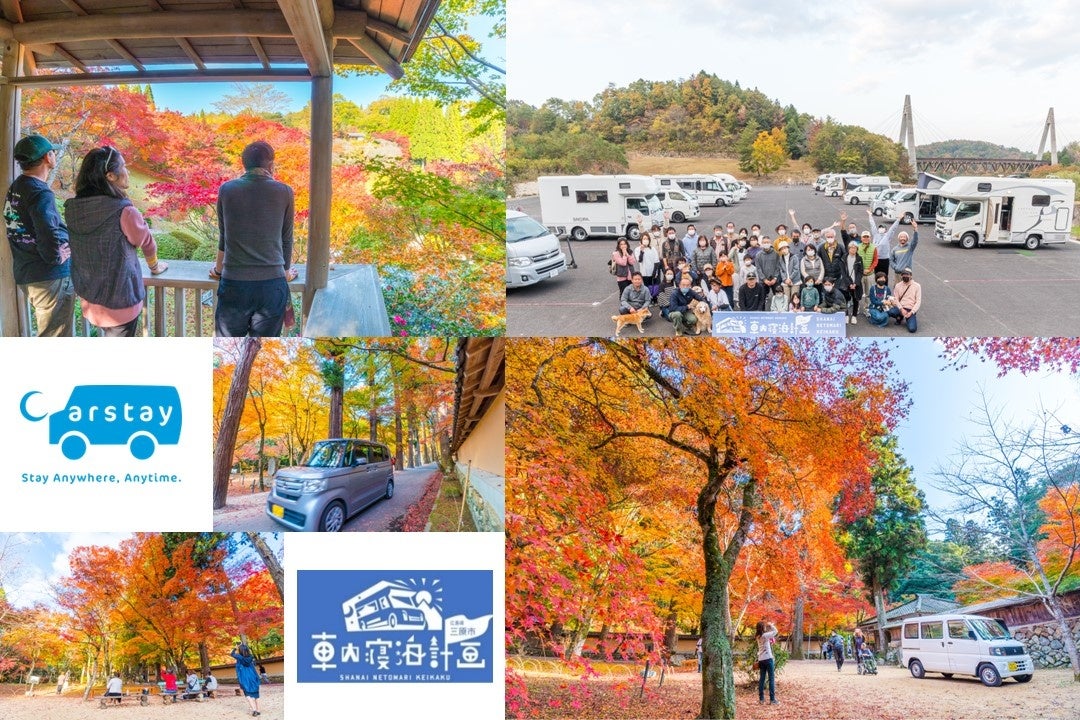 国内最大級のキャンピングカーレンタル・カーシェアと車中泊スポットの予約プラットフォーム事業を展開するCarstay(カーステイ)株式会社(本社:神奈川県横浜市、代表取締役:宮下 晃樹)と株式会社KOTOYA(本社:広島県三原市、代表取締役:泉 太貴)などで構成する三原市車内寝泊計画実行委員会(みはらししゃないねとまりけいかくじっこういいんかい)は11月の毎週末に(計4回)、広島県三原市を代表する秋の絶景紅葉スポット「佛通寺(ぶっつうじ)」や「三景園(さんけいえん)」を巡る観光旅行イベント「秋のAirPortCamp in MIHARA(エアポートキャンプ・イン・ミハラ)」を開催し、キャンピングカーなど含め車中泊仕様の車 合計約75台・約145人が参加しました。