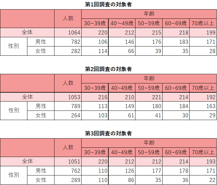 第3回調査 : 空き家を所有する30歳以上の男女1,051名第3回調査の対象者