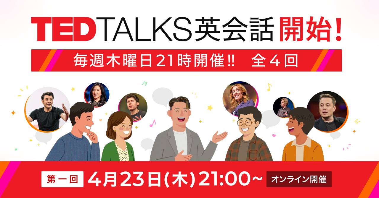 TED TALKSを題材にした、ファシリテーターのもと参加者全員で意見を交わすアウトプット型英会話コミュニティ「TED TALKS 英会話」の提供開始!