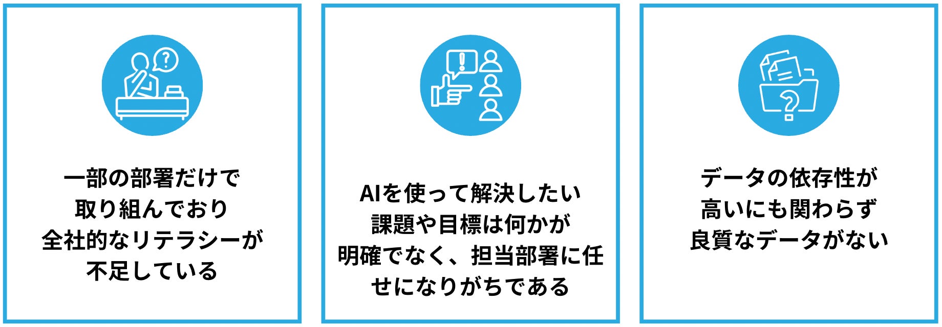 AIはデータへの依存性が高く、データの質が成功の鍵を握ります。データが組織全体で一貫して、適切に管理・活用されることで、AIプロジェクトの成果は向上します。