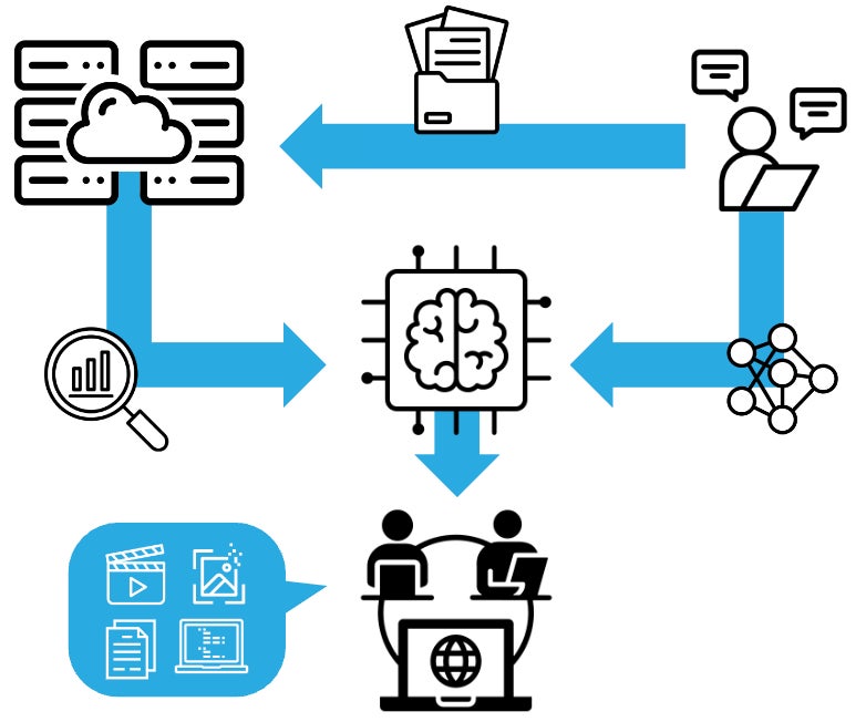 生成AIやChatGPTなどの大規模言語モデル(LLM)を活用し、業務効率化に必要なスキルを学びます。テキスト、画像、音声や、それらを扱うマルチモーダルAI技術を通じて、幅広い業務の自動化や最適化の方法を習得します。