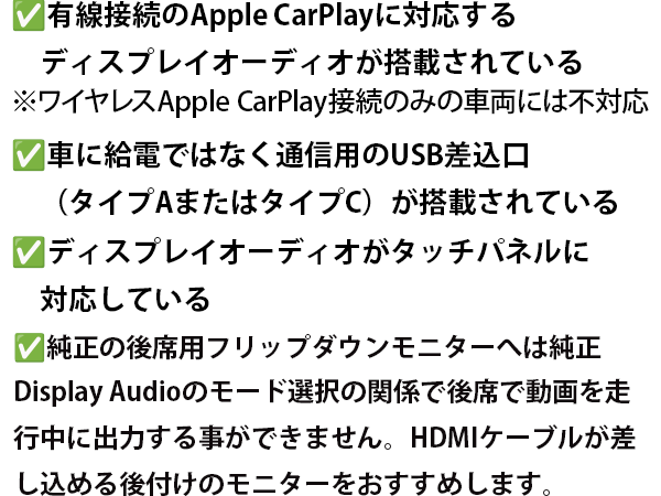 ※ワイヤレスApple CarPlay接続のみの車両には不対応