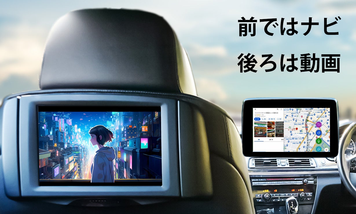 ヘッドレストにモニターを設置してHDMIケーブルで接続すれば、大画面で映像を楽しめます。