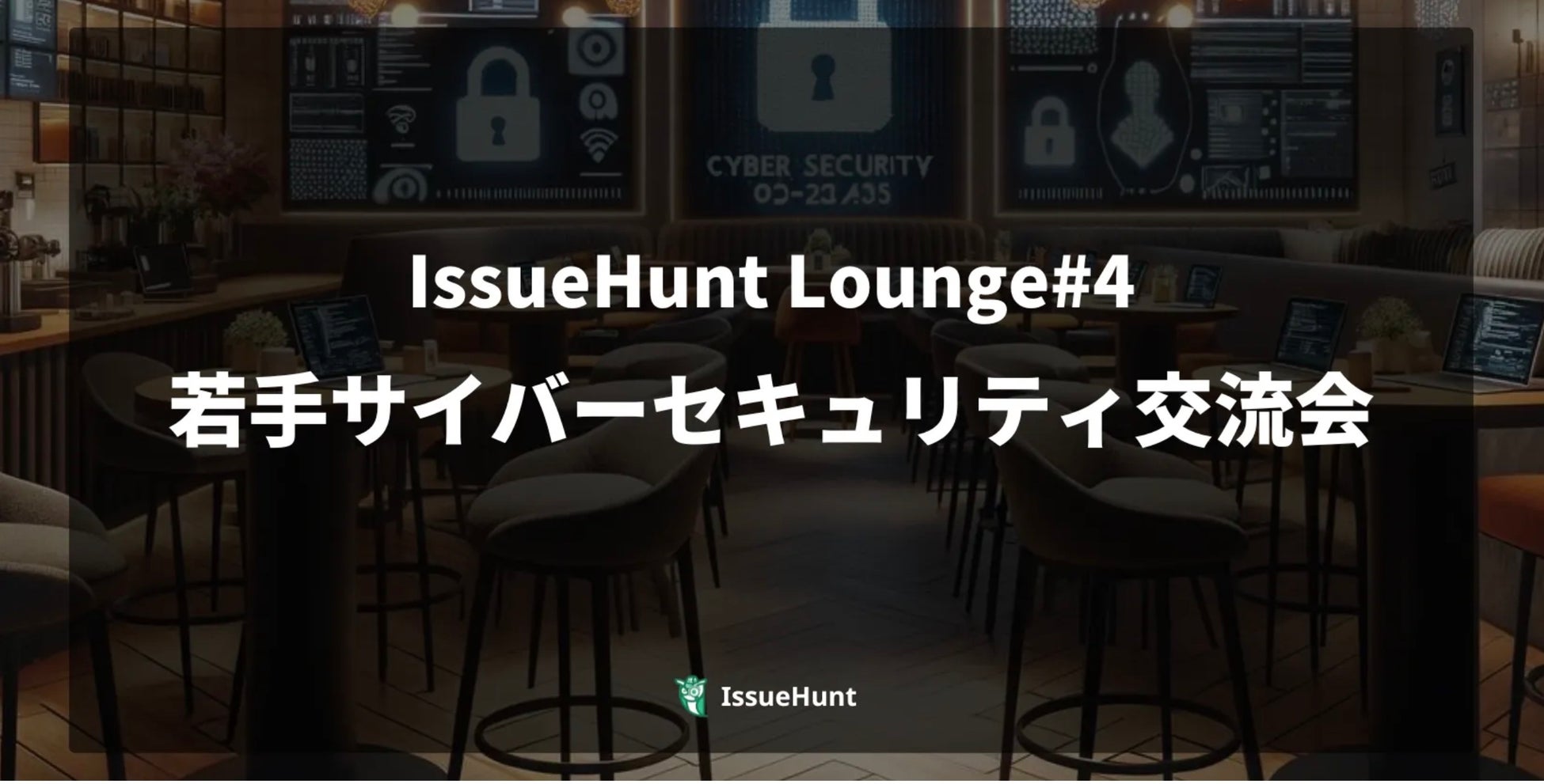 ・通常のIssueHunt Loungeは、「プロダクトセキュリティ」をテーマに主に事業会社のセキュリティ担当者の方々を対象に開催しておりますが、今回はコーポレートセキュリティやセキュリティベンダーに従事されている方などもお申し込みいただけます