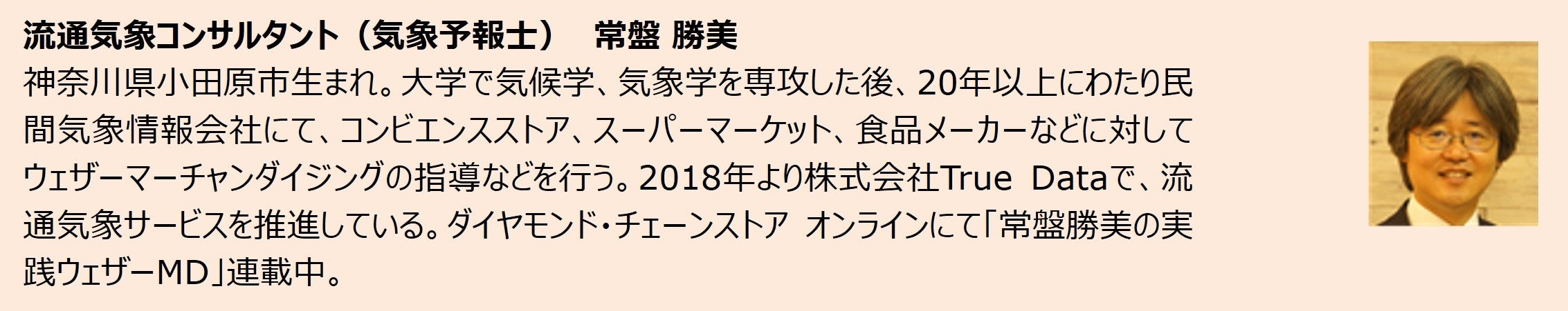このランキングは当社の流通気象コンサルタント(気象予報士) 常盤勝美が監修しました。購買と気象のデータを用いて相関係数を算出し、関係性の強さをランキングに表しました。