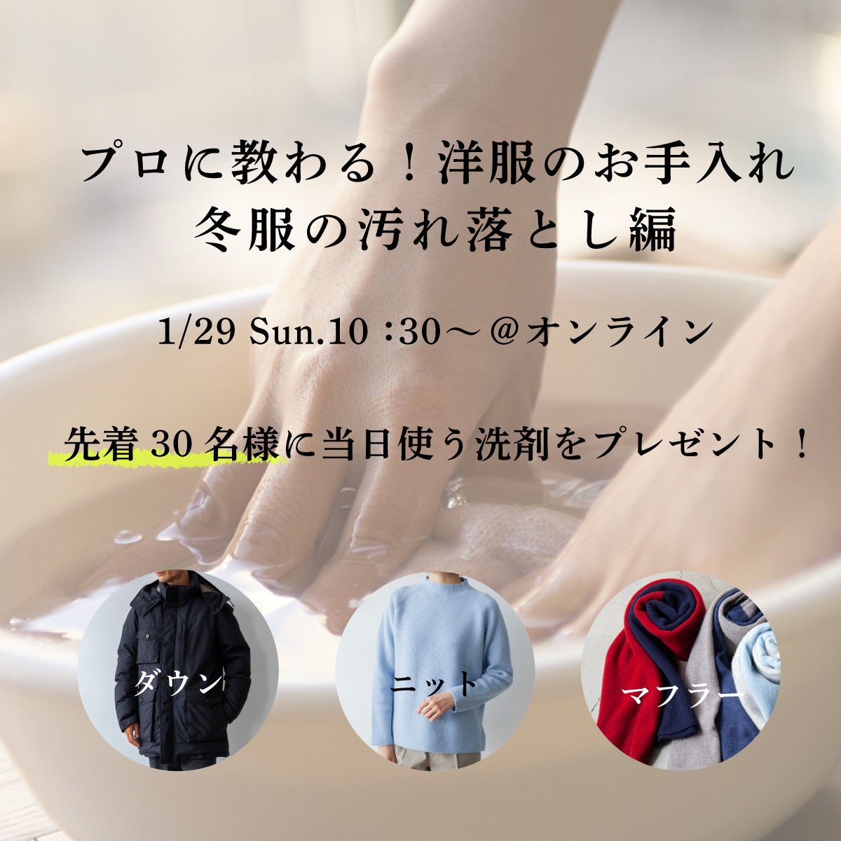 【1/29 10:30〜オンライン無料イベント開催】プロに教わる!洋服のお手入れ〜冬服の汚れ落とし編〜