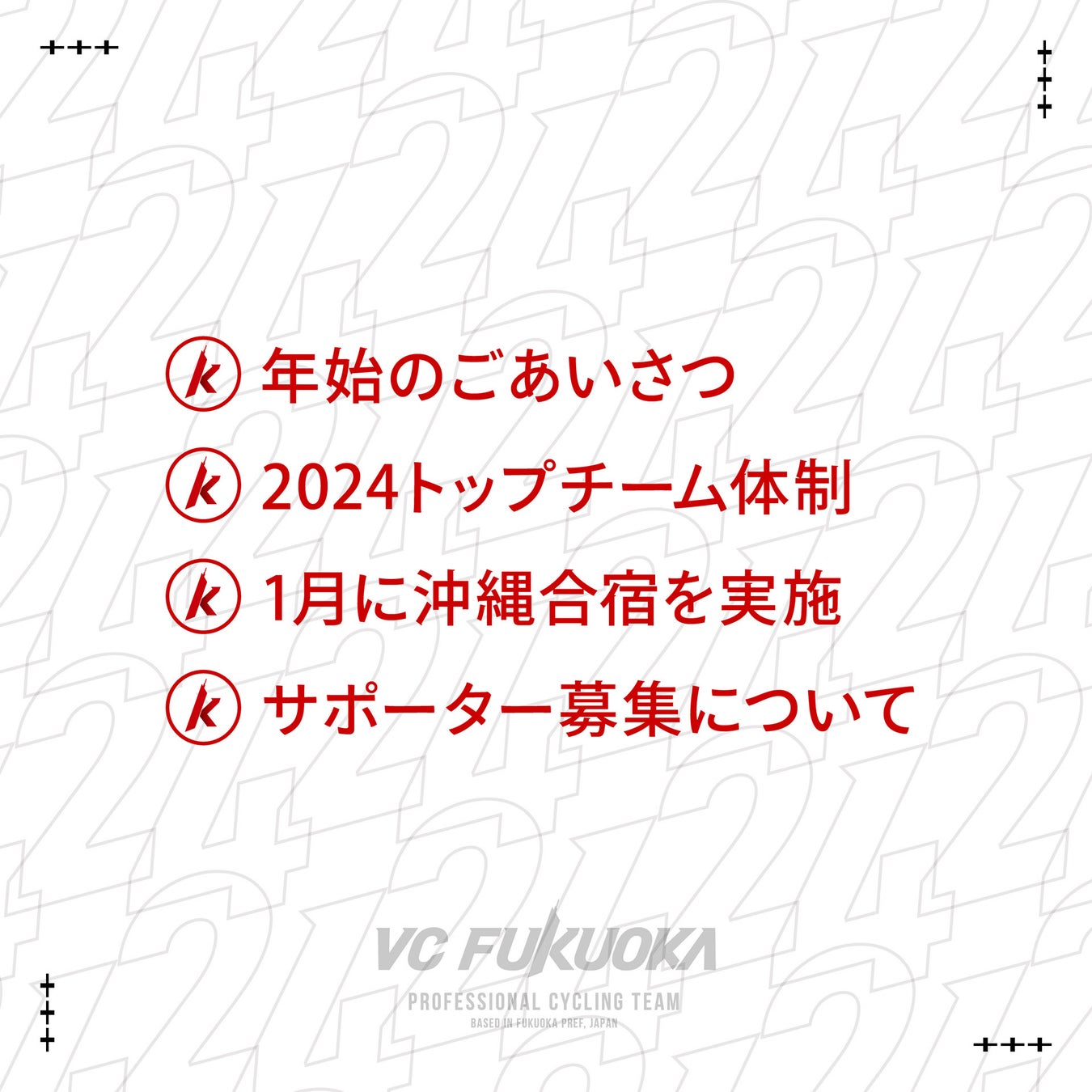 VC FUKUOKAは引き続き、トップチーム、ディベロップメントチーム、ユースクラブ、マスターズクラブといった各活動を通して、自転車競技の普及と地域社会への貢献を目指してまいります。本年もどうぞあたたかいご声援をお願いいたします。