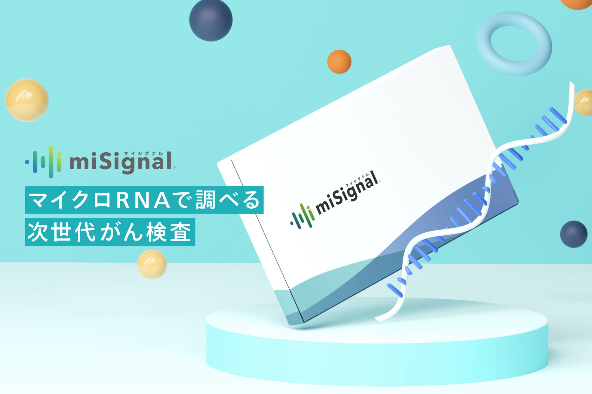 『miSignal®︎(マイシグナル)』は、がんの発症や進行、転移に重要な役割を果たすマイクロRNAに着目した次世代がん検査※です。本サービス最大の特長は“痛みがない”という点です。ご自宅またはmiSignal®︎導入医療機関で採尿するだけで、負担なく気軽にがんのリスクチェックを行っていただけます。現在の対応がん種は大腸がん、肺がん、胃がん、乳がん、すい臓がん、食道がん、卵巣がんの7種です。詳細はWebサイト(http://misignal.jp/)をご覧ください。