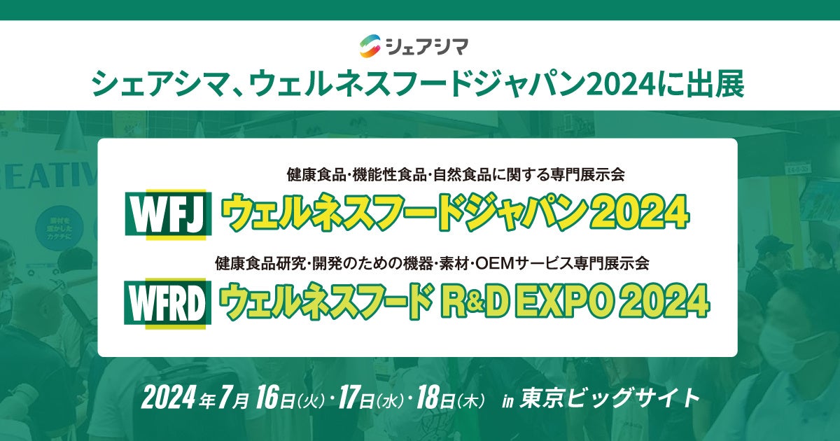 シェアシマ、日本最大級の健康食品・機能性食品・自然食品の専門展示会「ウェルネスフードジャパン2024」に出展