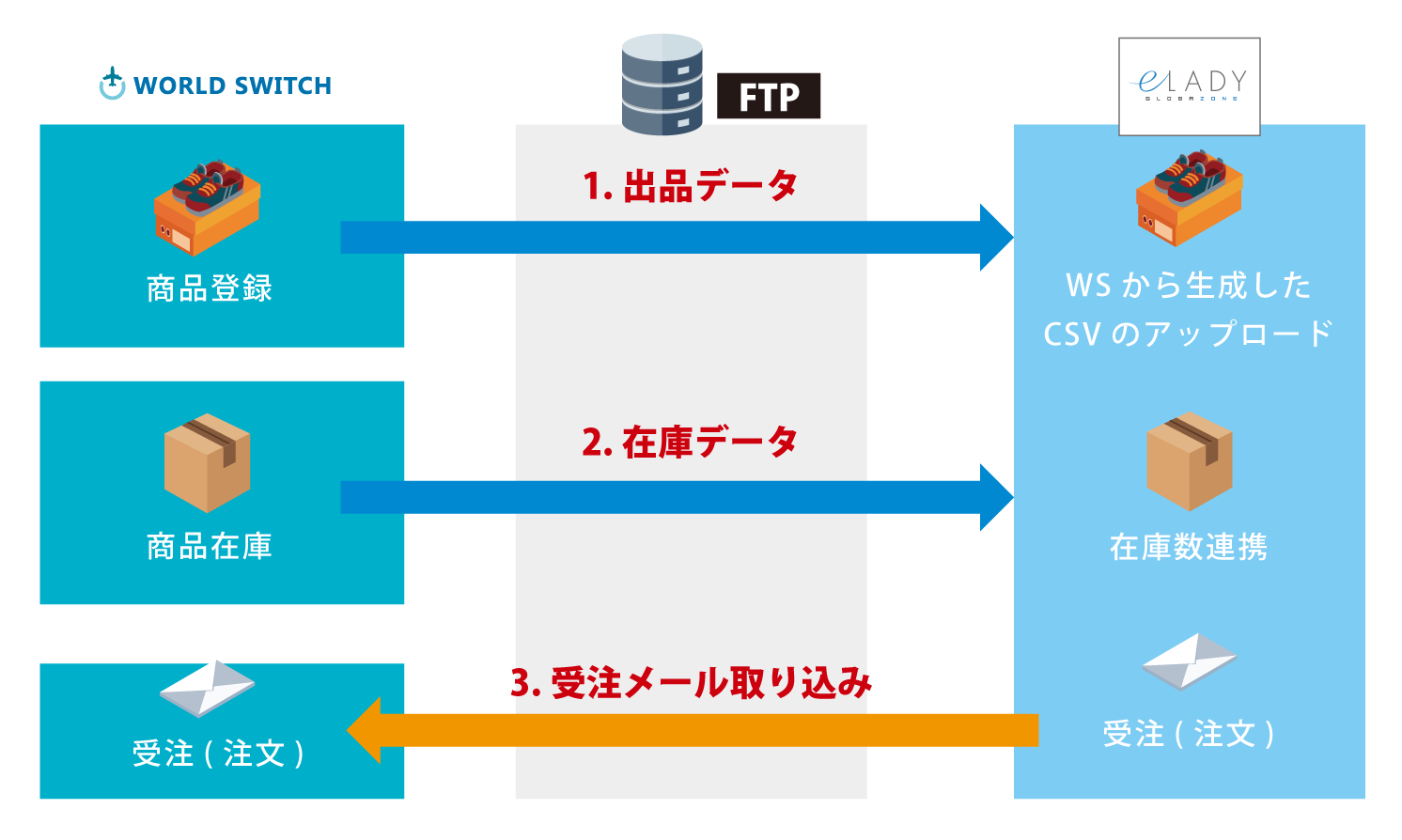 この度のサービス提携により、WORLD SWITCHに登録されている商品の情報を元に、在庫のあるものを自動でイーレディーの運営するモールへ販売・連携致します。
