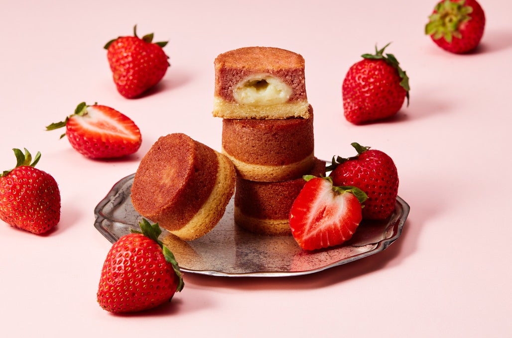 使用しているバターはニュージーランドで放牧され、牧草で育った牛のミルクから作られる「グラスフェッドバター」。βカロチンが多く含まれる濃い黄色の色合い、上品なコクとあっさりとした後味が特徴です。いちごのおいしさをぎゅっと濃縮したピューレを作り、バタークリームと混ぜあわせました。いちごの甘酸っぱさとバターのコクが口の中いっぱいに広がる至福の時間をお楽しみください。