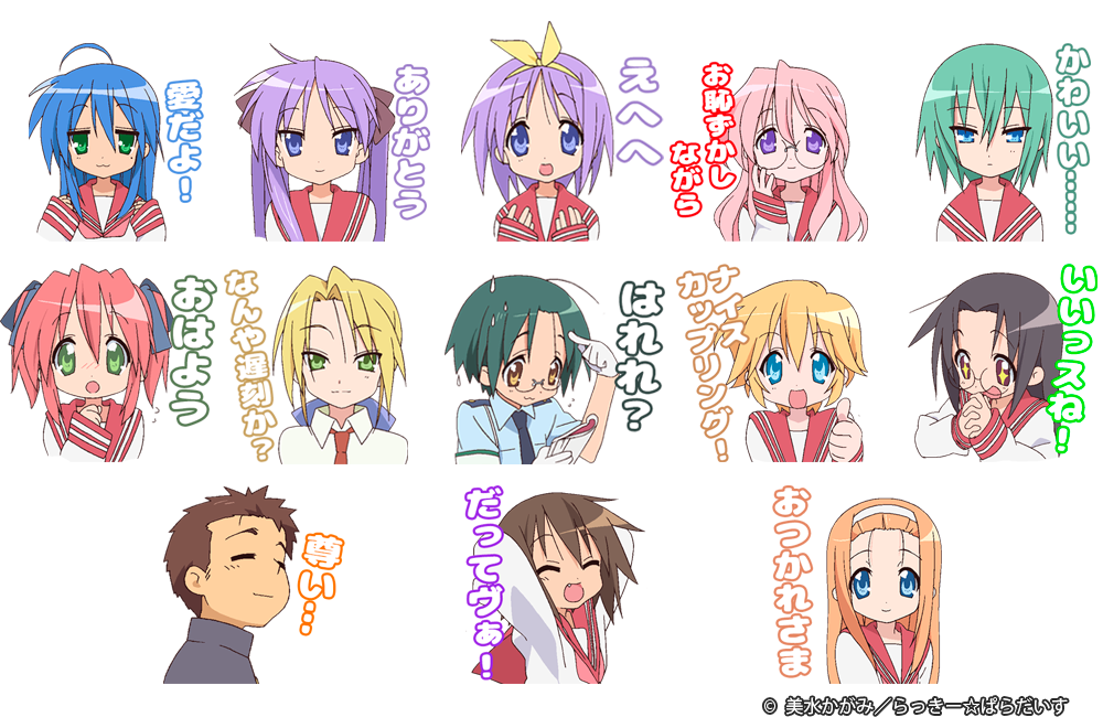 「らき☆すた」に登場するキャラクターの限定スタンプがツイキャスに登場。各キャラの特徴や表情を元にしたツイキャスならではのセリフも入っています。