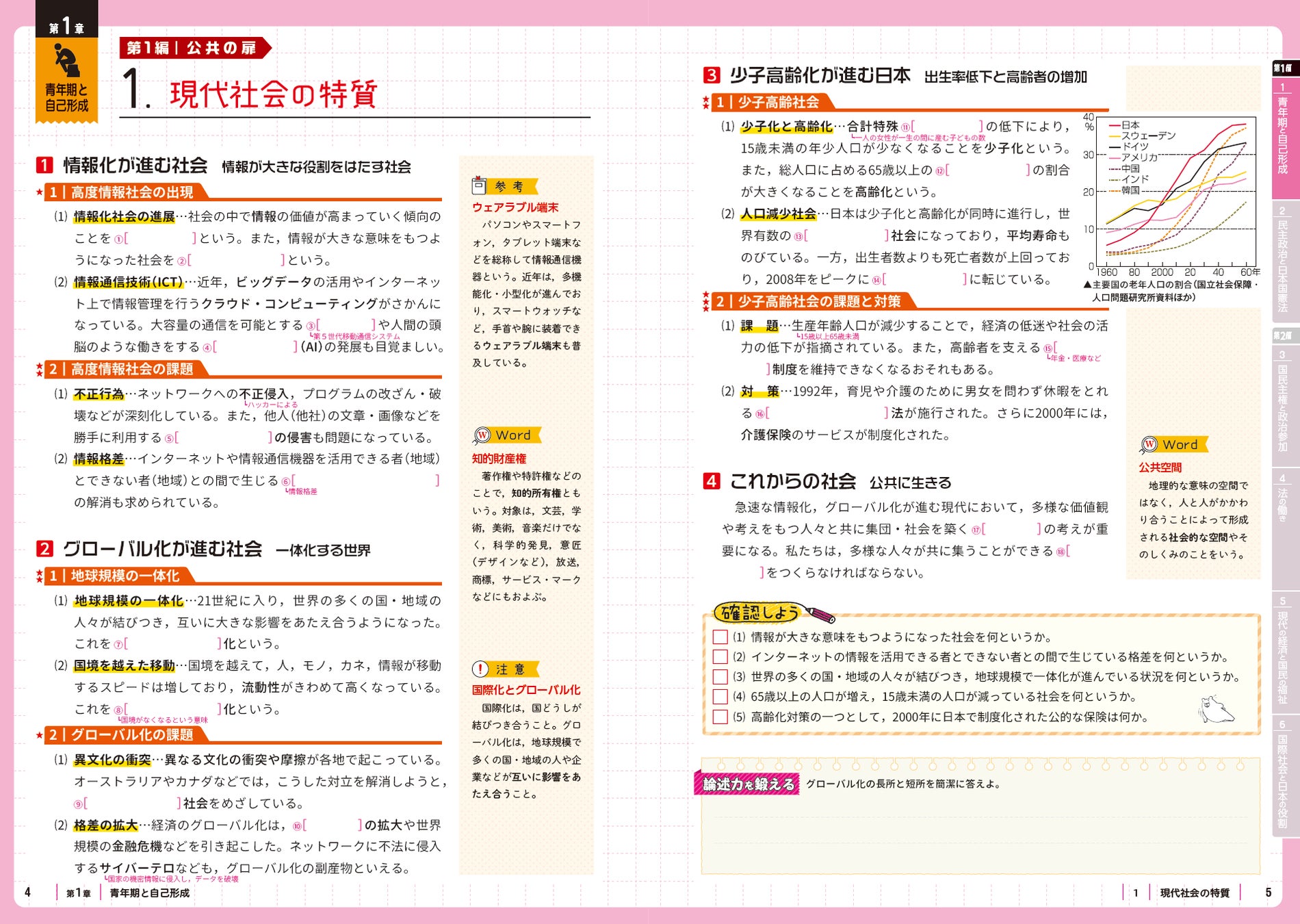 ●公共/解説文を読みながら穴埋め式で教科書レベルを定着。単元末には論述力を鍛える問題も