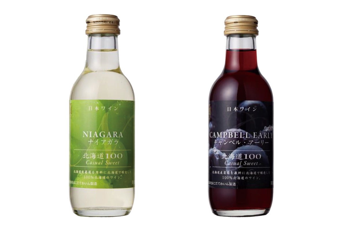 ▪右:北海道100 キャンベルアーリー(200ml)/858円(税込)/ライト辛口