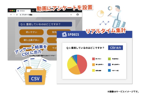 アンケート動画も簡単に作成でき、取得したデータはCSVに出力が可能