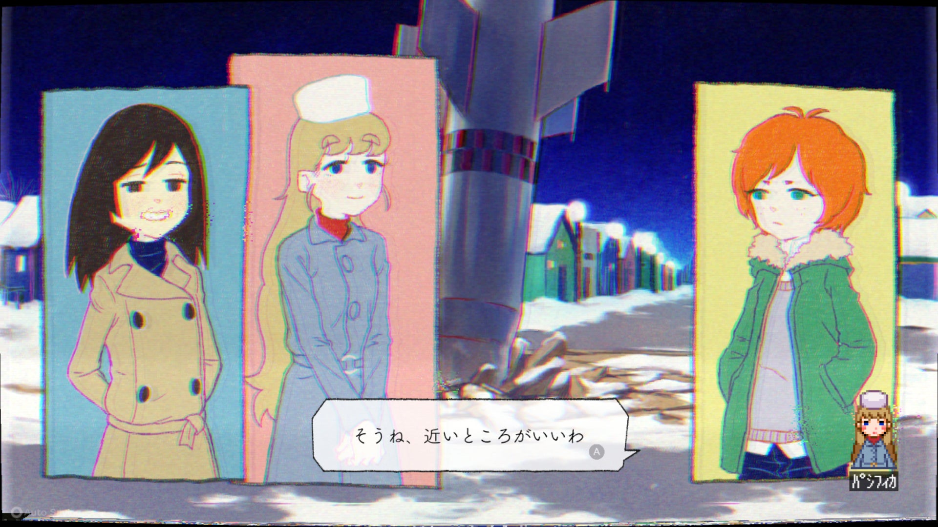 『ghostpia シーズンワン』は、絵本のような温かみのあるヴィジュアルと、グリッチとノイズに彩られたノスタルジックな表現が特徴のヴィジュアルノベルです。物語の舞台は、不死の「幽霊」たちが住む雪深い町。この町にひとり暮らす異邦⼈の少⼥「⼩夜⼦」が、新⼊りの幽霊「ヨル」と出会ったことで、停滞した世界が動き出します。町の外に思いをはせる⼩夜⼦と、ある出来事で失われた友情のゆくえ。無残なかわいさとさびしい暴⼒の物語が、「読む映画」として描かれます。