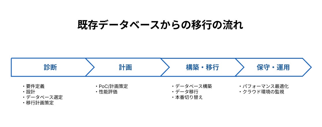 本サービスでは、他クラウドや物理サーバーから Google Cloud へのデータベース移行計画から、移行後の運用まで、包括的な支援をご提供します。