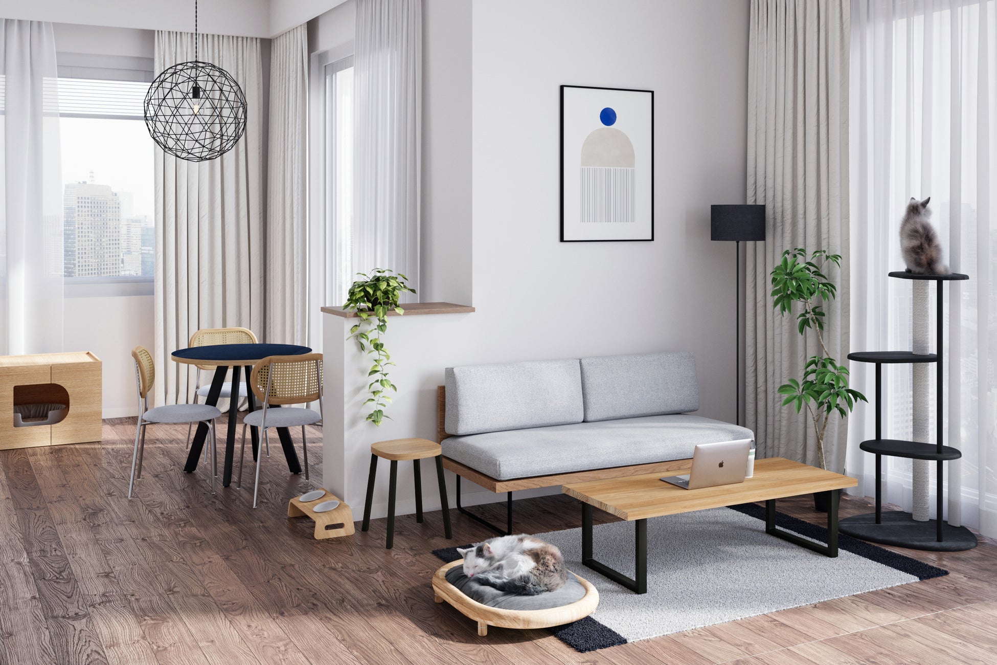 「景観を損なわないよう、猫との暮らしのための物は空間や家具に馴染むアイテムで揃えたい。」