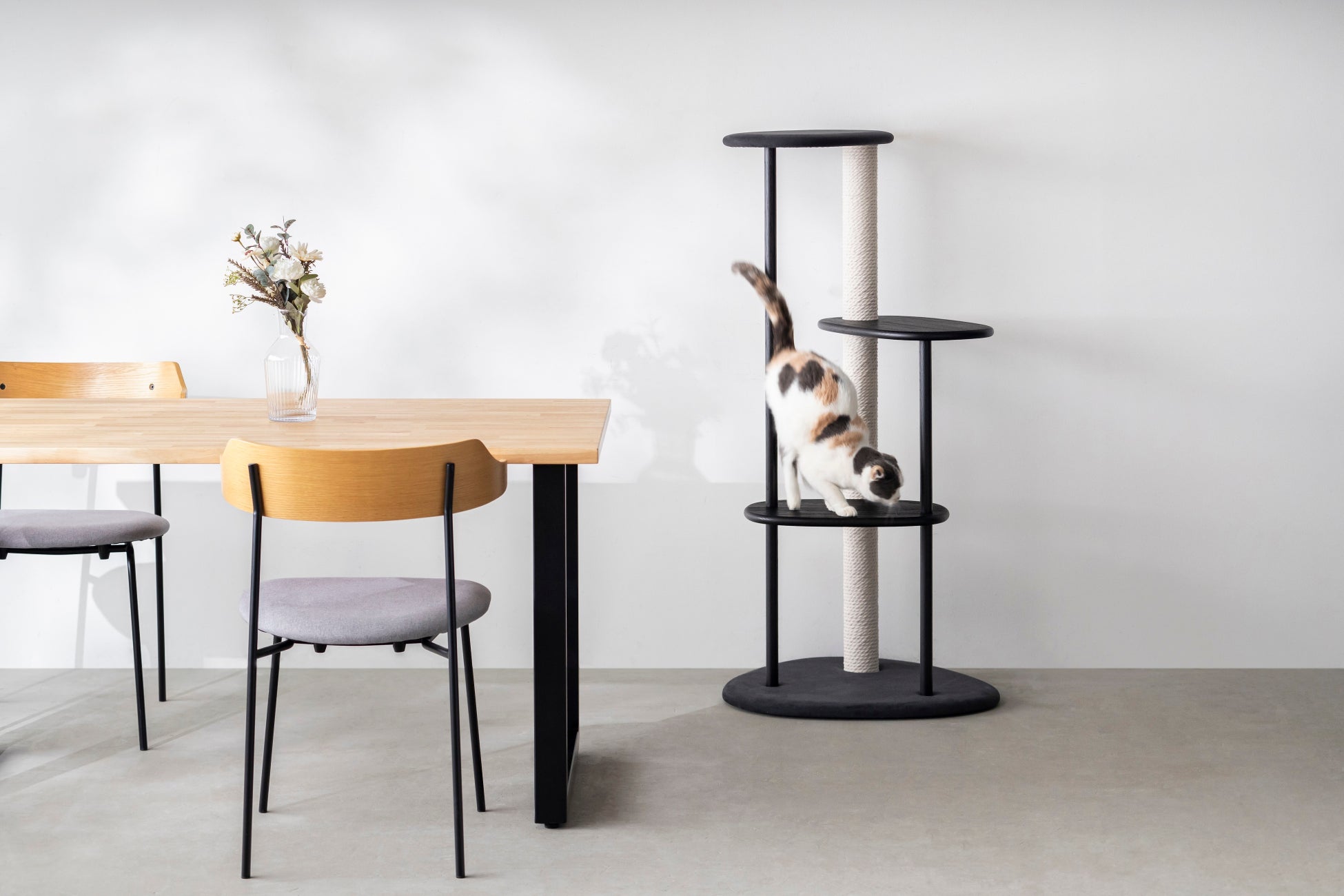 KANADEMONO別注カラー「KARIMOKU CAT TREE」を発売開始。ブラック&グレインマットブラックで、美しい暮らしを猫とともに。【Nekodamono】