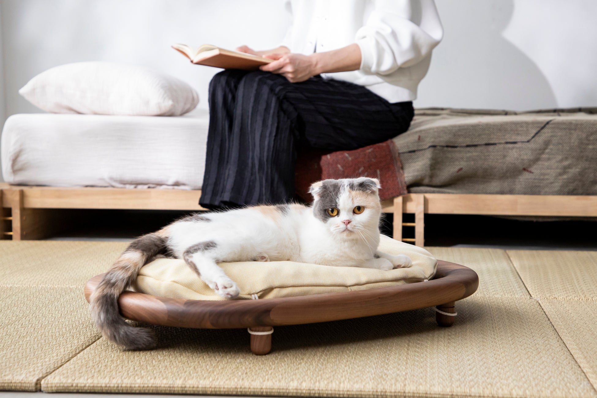 空間にそっと溶け込み、思わずどこに猫家具があるのか探してしまうほどの自然な存在感。KANADEMONOのTHE シリーズと調和する素材・カラーリングが統一感をもたらします。各カラーに合わせたおすすめのスタイリングもご紹介します。