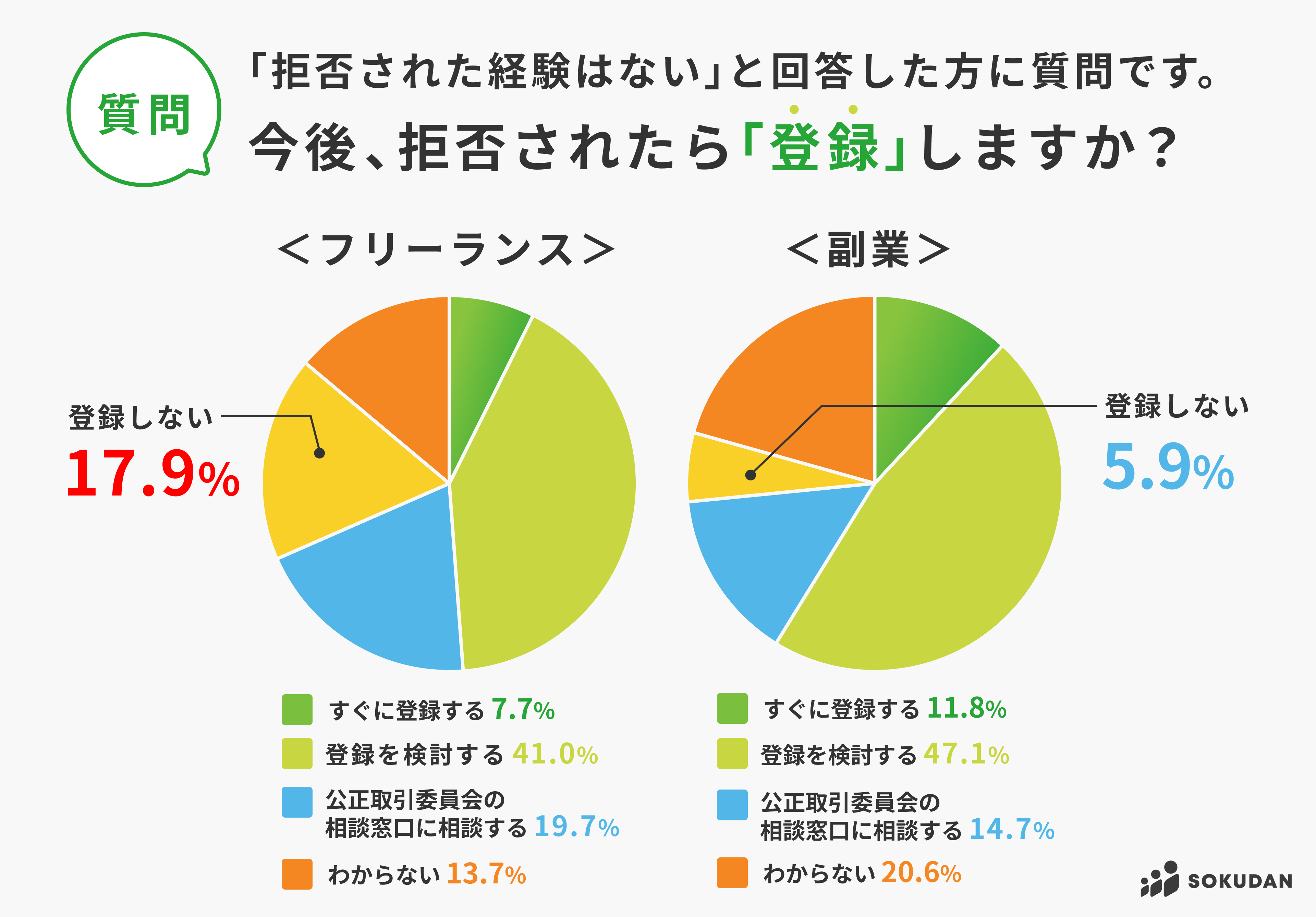 フリーランスは、取引拒否された場合も「登録しない」が副業の3倍多い