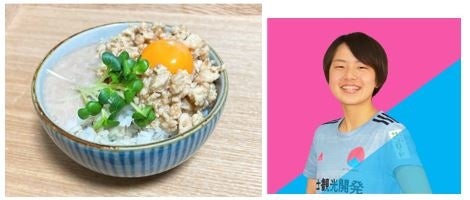 また就任日の6月16日は「麦とろの日」(2001年に日本記念日協会登録)で、麦ごはんにとろろをかけた“麦とろ”は暑くなるこの季節の夏バテ予防にオススメのメニューです。この度、就任日の「麦とろの日」を記念し、活動第一弾として田中里穂選手に腸活や夏バテにおすすめな「肉味噌麦とろごはん」を作っていただきました。