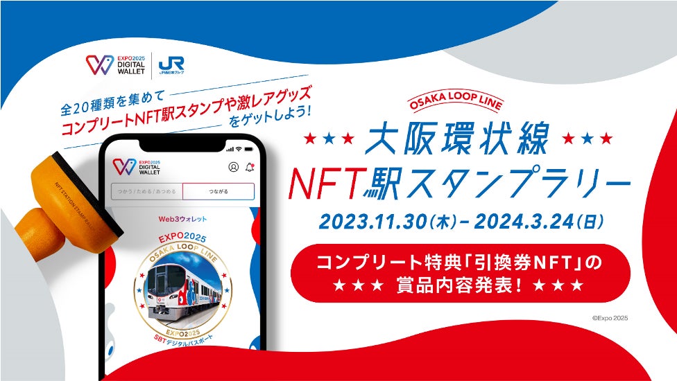 公益社団法人2025年日本国際博覧会協会がサービスを開始した「EXPO 2025 デジタルウォレット」の事業連携サービスの一つとして「大阪環状線NFT駅スタンプラリー」を2023年11月30日(木)より実施していますが、2024年2月14日(水)よりスタンプ設置箇所である全20箇所が出揃い、コンプリート特典が獲得できるようになりました。