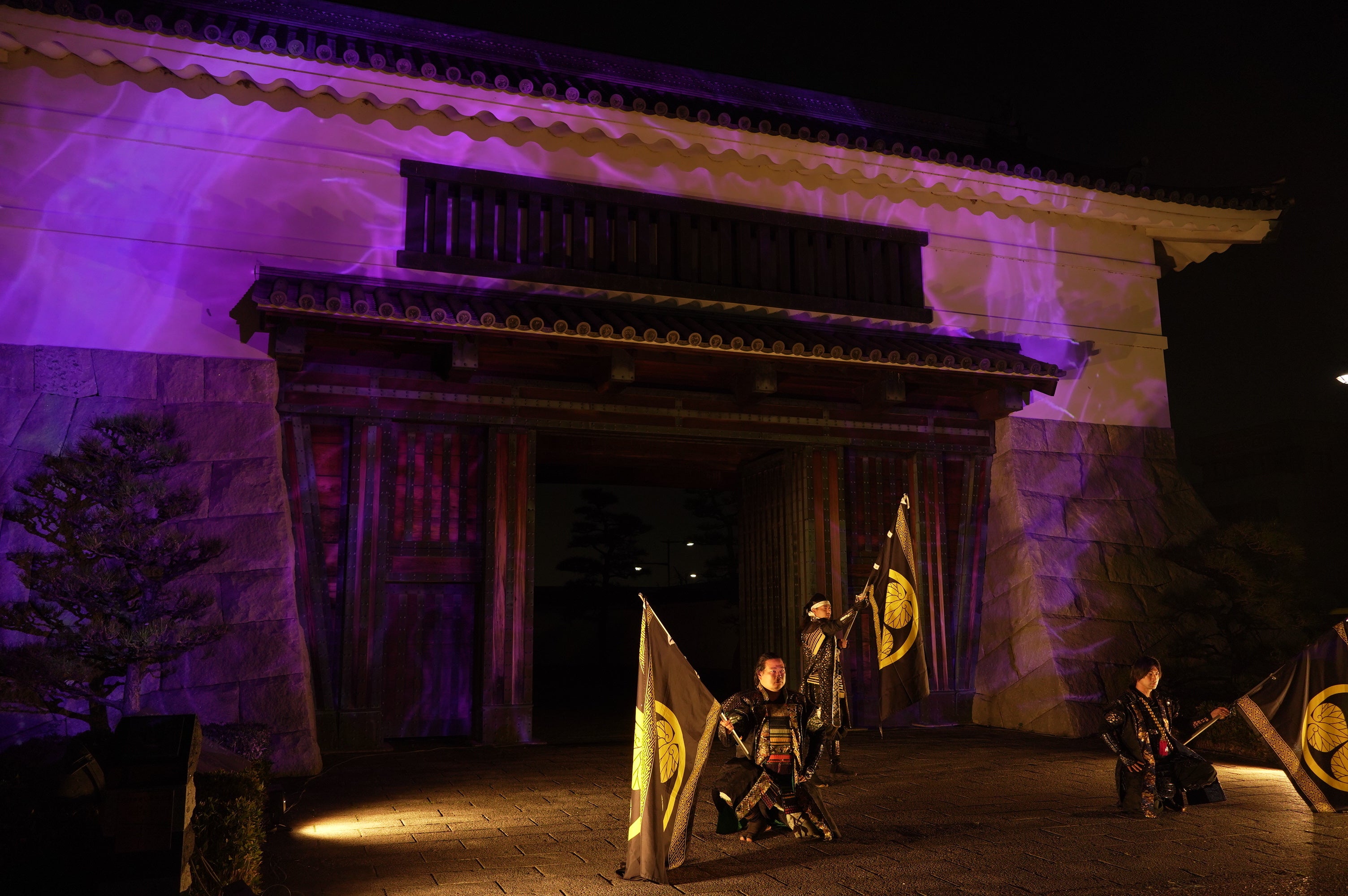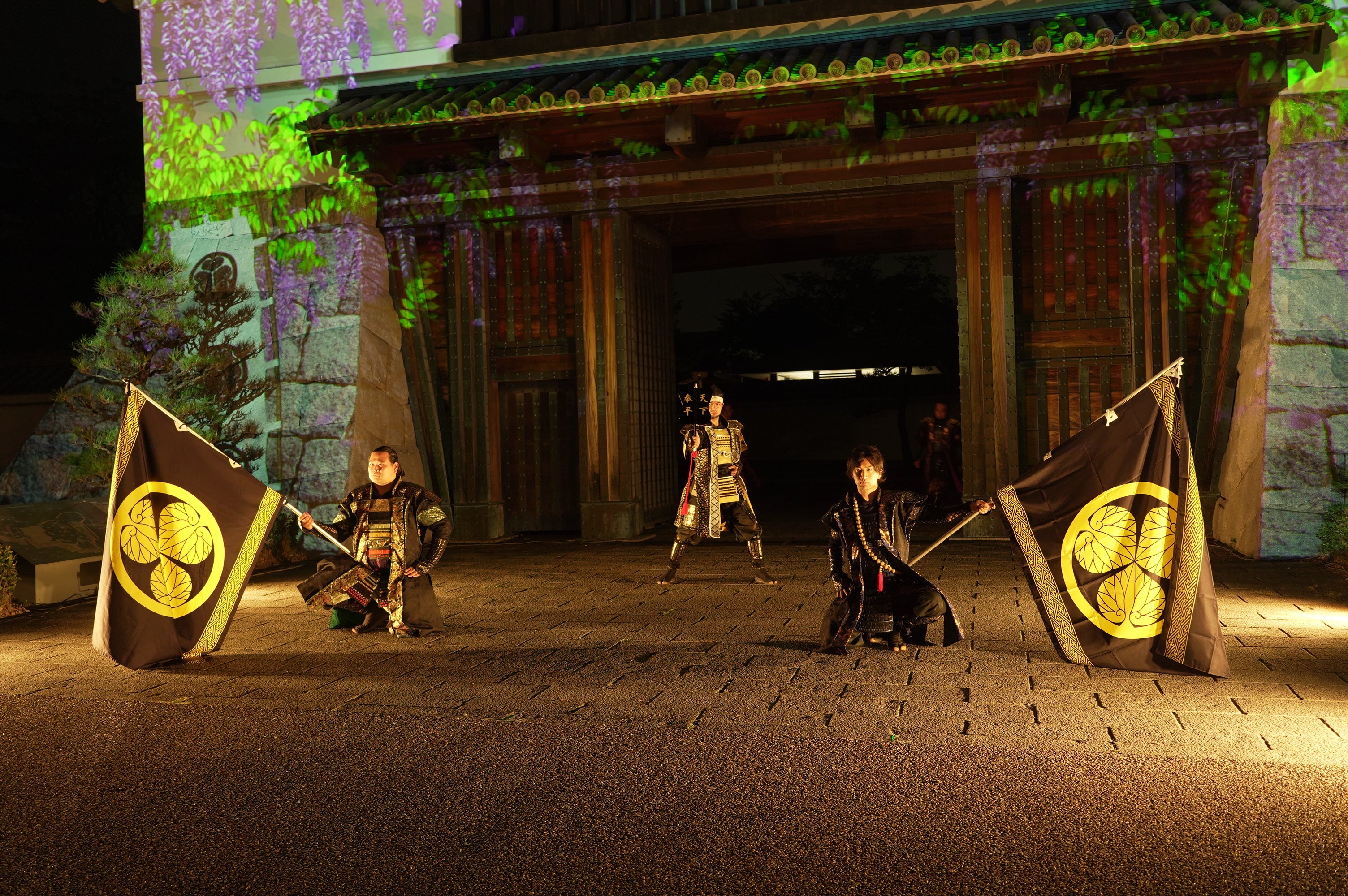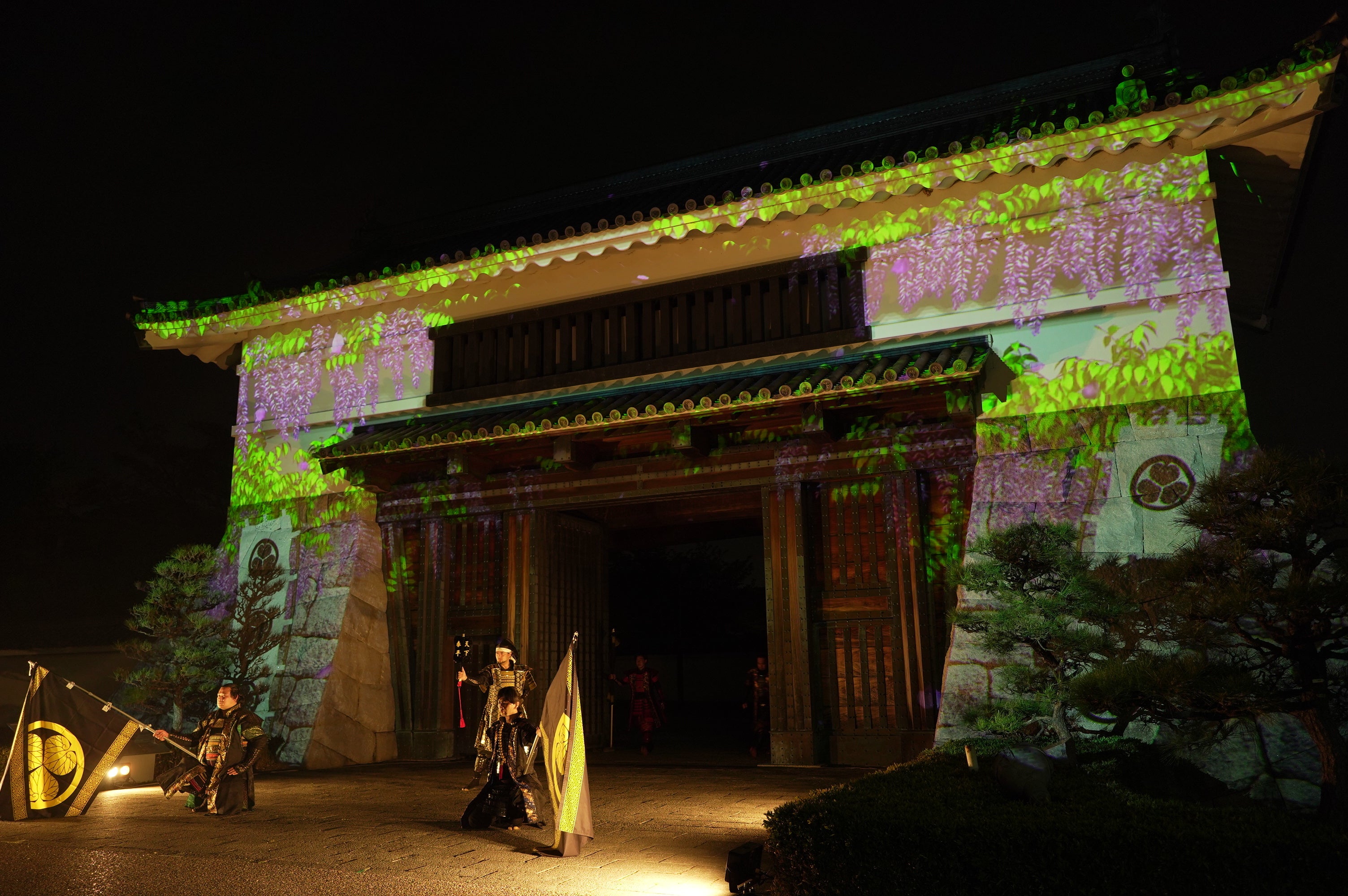 【開催中】一旗プロデュース「五万石藤まつり 岡崎城大手門 プロジェクションマッピング2022」を愛知県岡崎市で開催。グレート家康公「葵」武将隊の演武とのコラボレーションによるスペシャルバージョンも。
